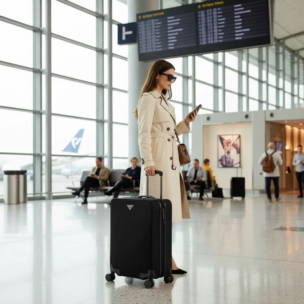Prada Re-Nylon and Saffiano Leather Trolley Carry On Black
