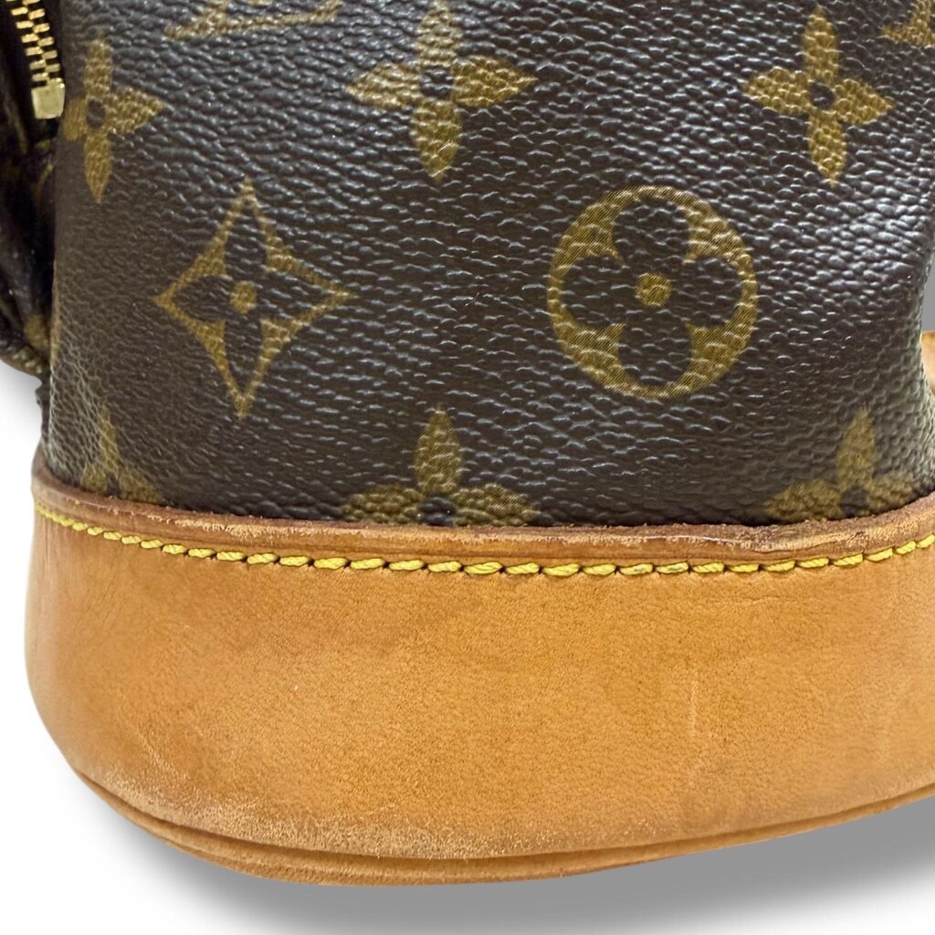 In very good condition. Patina to the leather. Light scratching to the bottom leather. Light marks on the bottom around the leather trim.