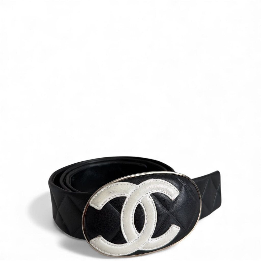 Chanel 2005 Cambon Interlocking CC Quilted Leather Belt Black 85