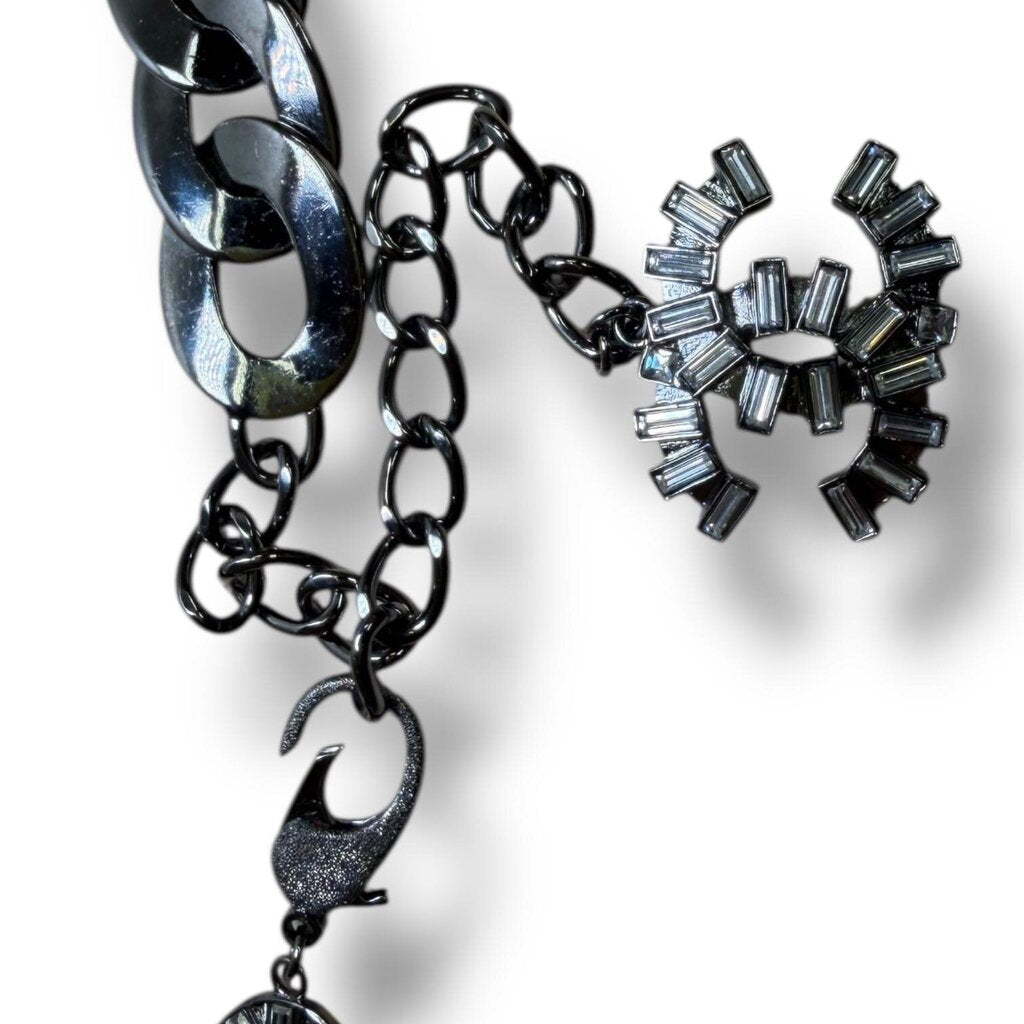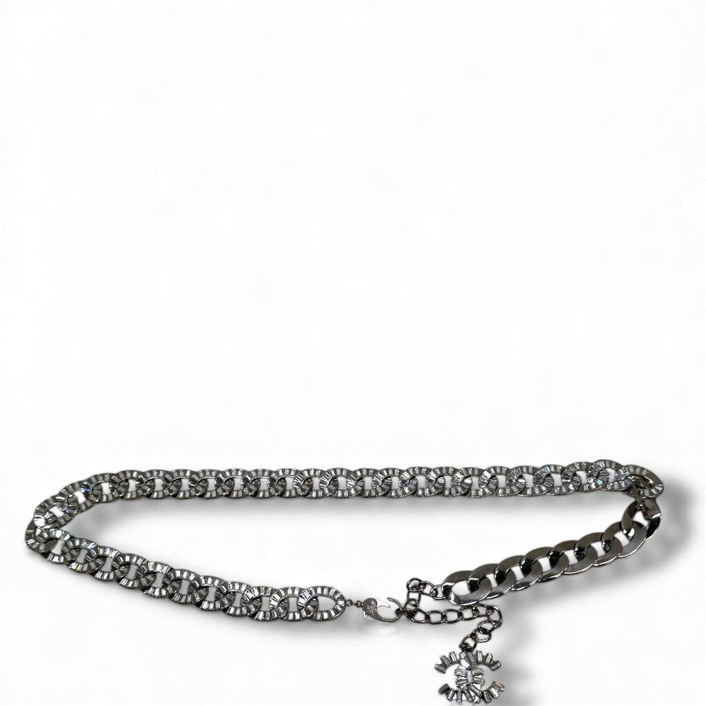 Chanel 2006 CC Baguette Crystals Ruthenium (Gun Metal) Chain Link Belt Silver