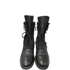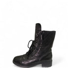 Chanel Moto Quilted Side Zip Lace Up Leather Combat Boots Black