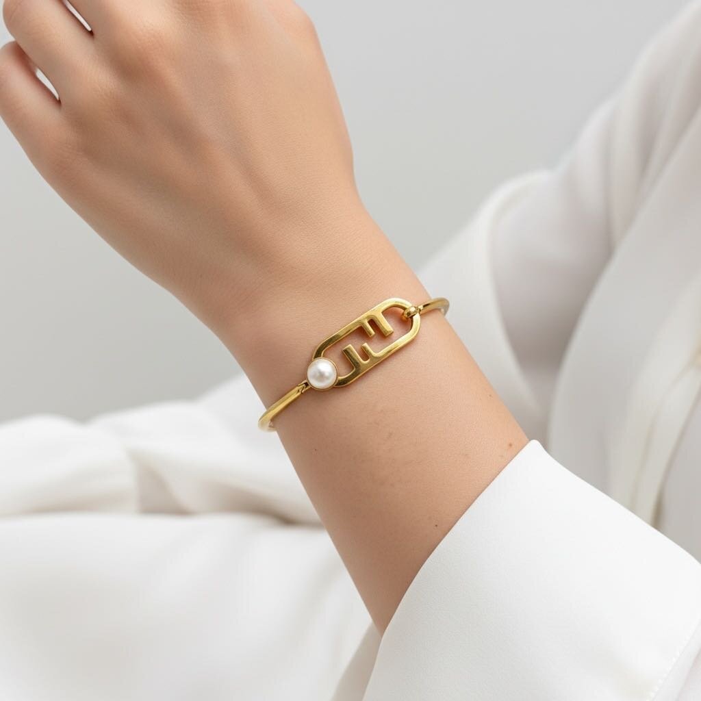 Fendi Orlock Pearl Gold Plated Bangle Gold