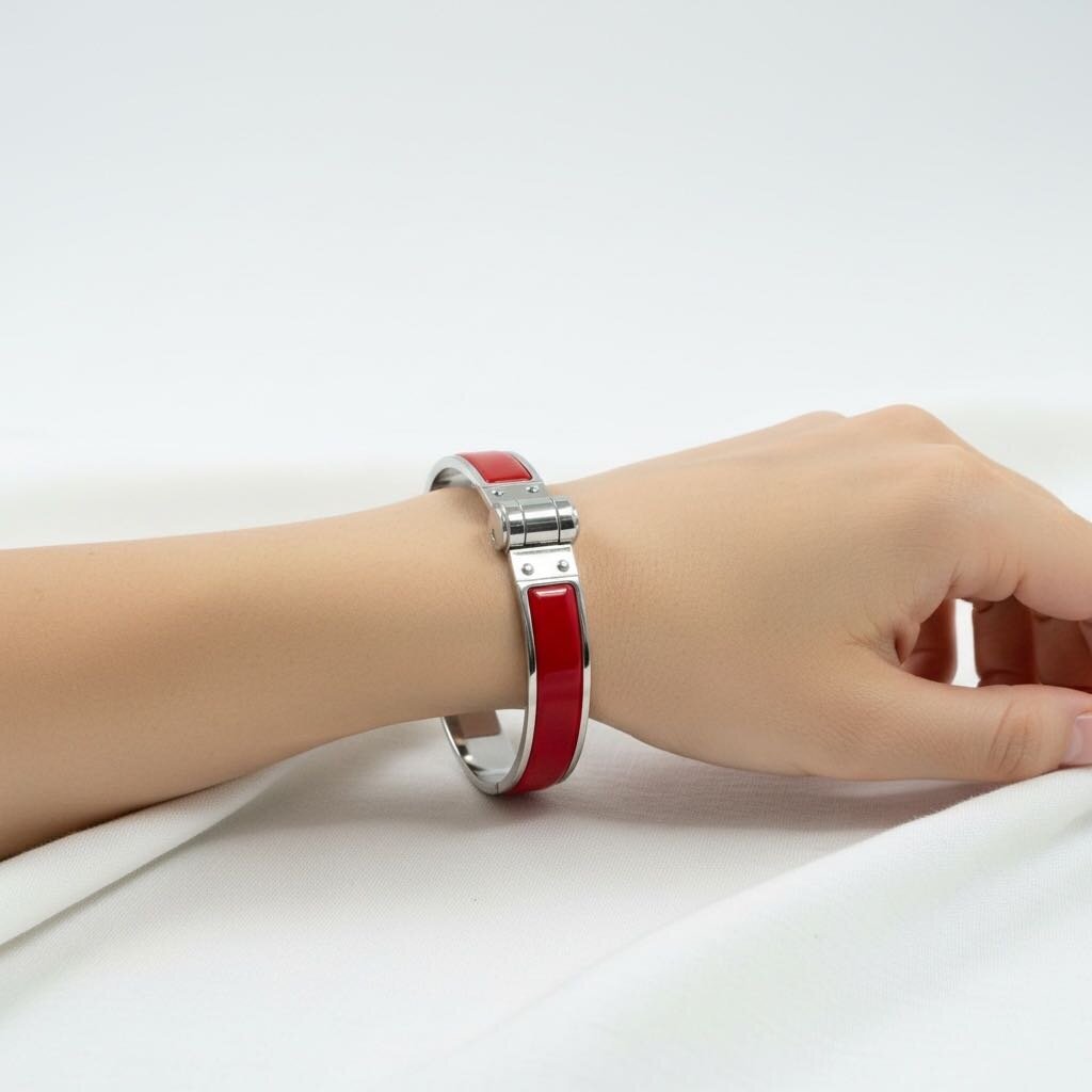 Hermes Narrow Uni Hinge Bangle Bracelet Red