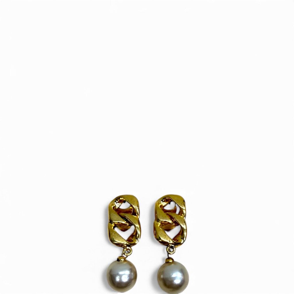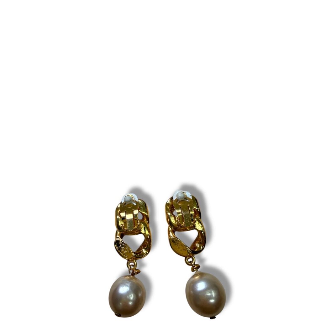 Chanel Chain Dangle Clip Metal Gold Tone FAux Pearl  Earrings