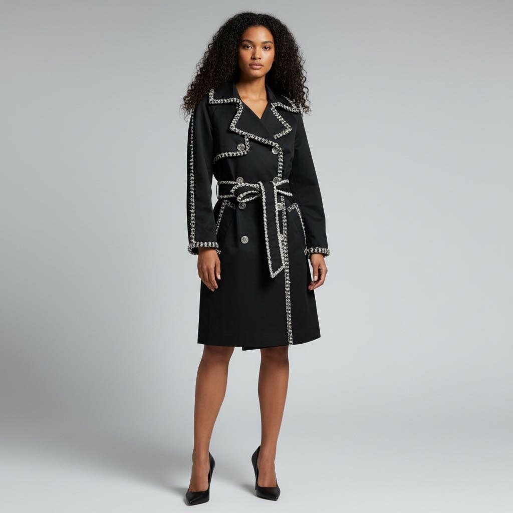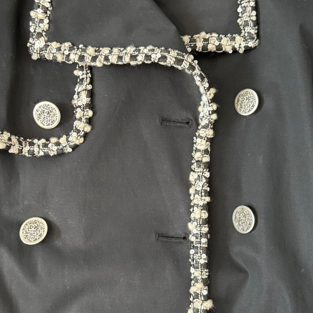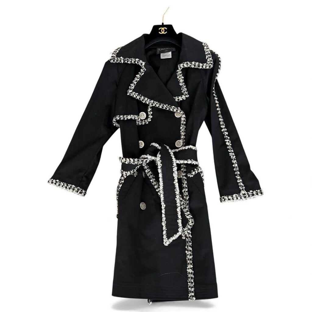 Chanel Rare Vintage 2004 Trench Coat with Tweed and Beaded Trim *Altered* Black 36