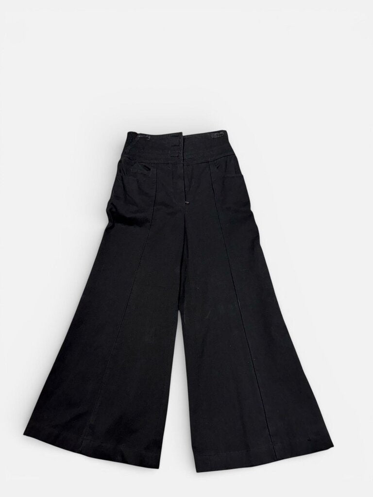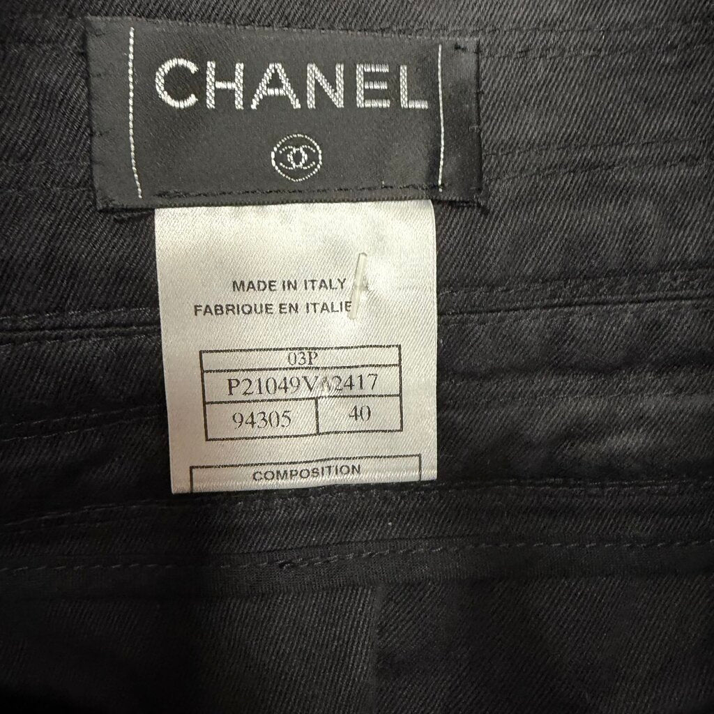 Chanel Wide Leg Chanel Logo Button Pants Black 40