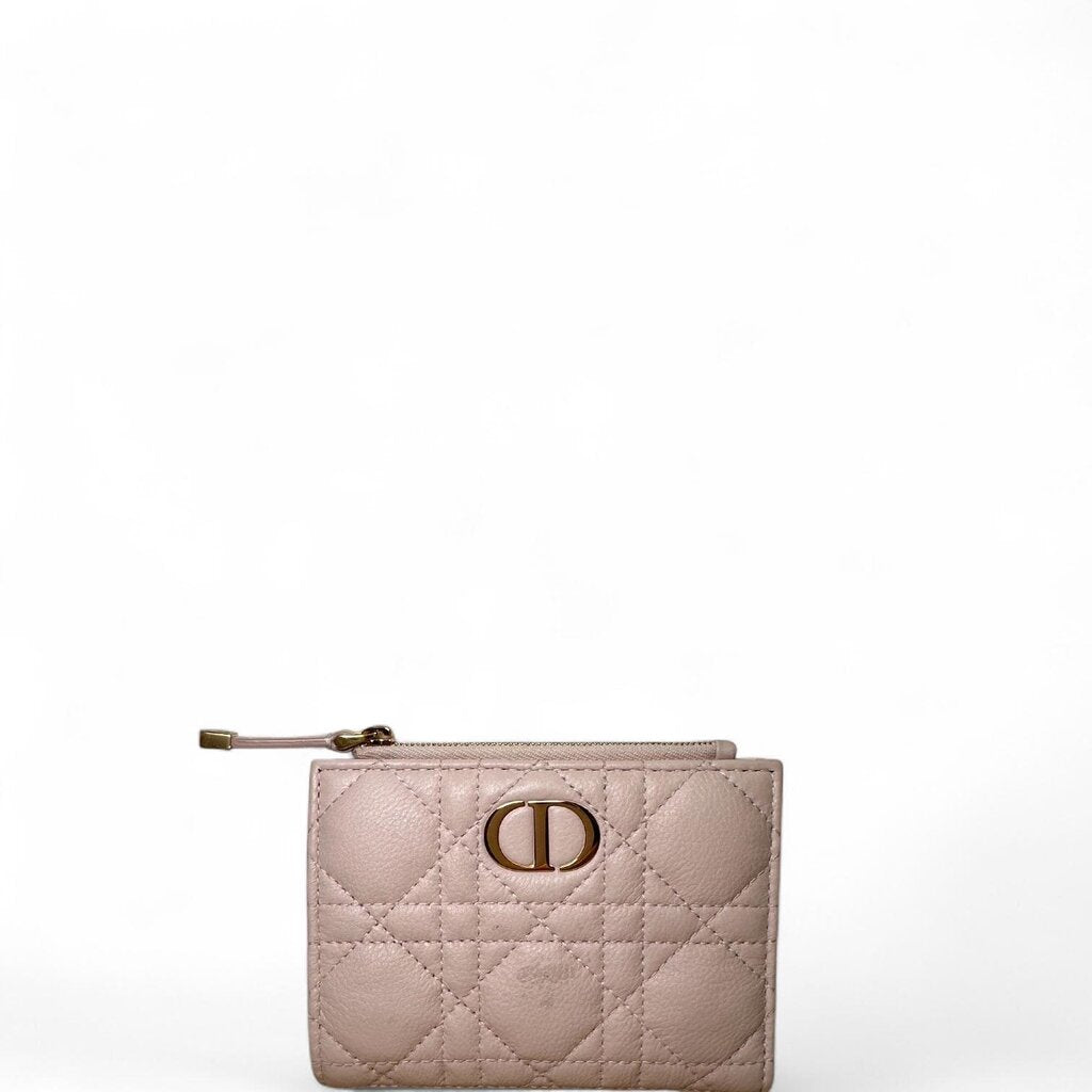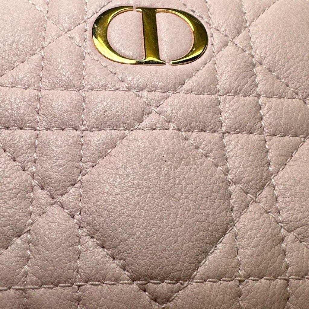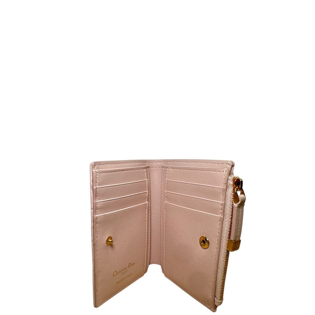 Christian Dior Caro Dahlia Grained Leather Cannage Wallet Pink