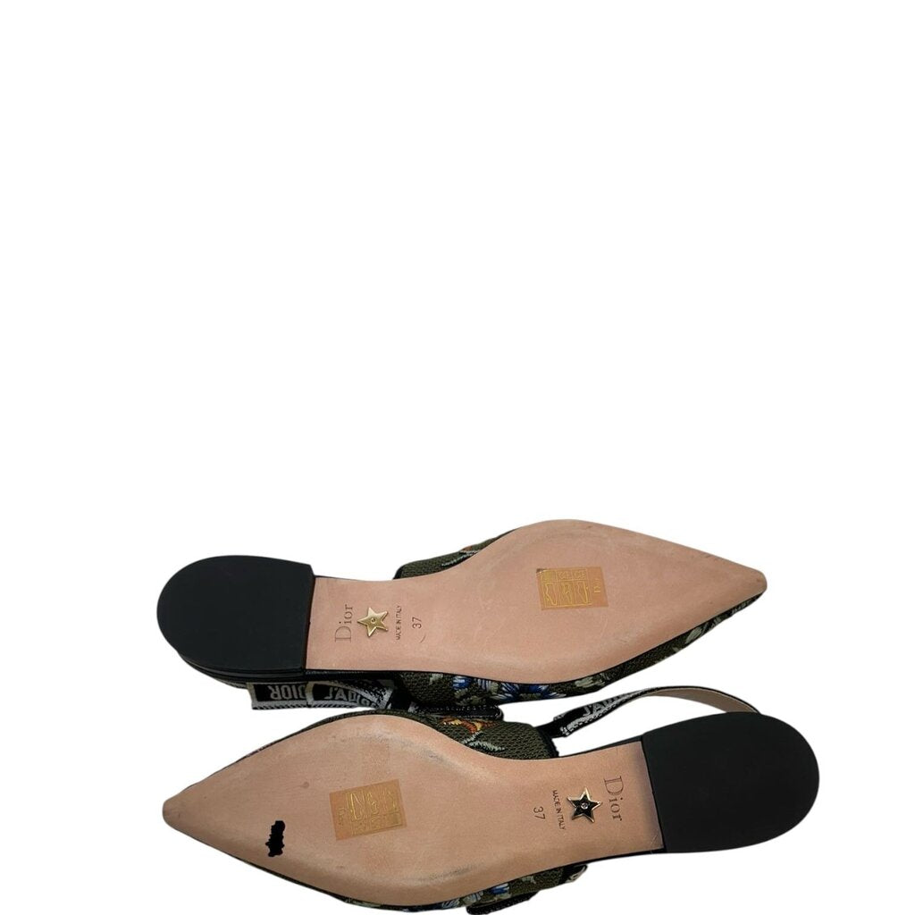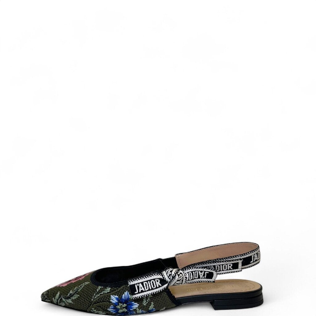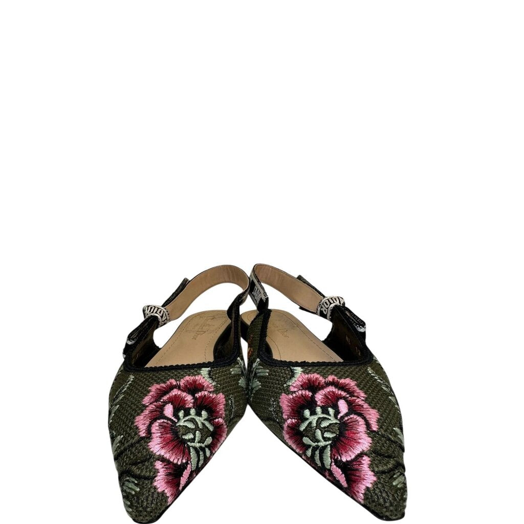 Christian Dior J'adior Slingback Floral Flats Green 37