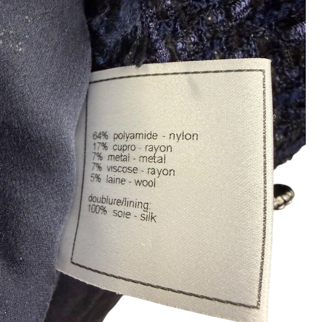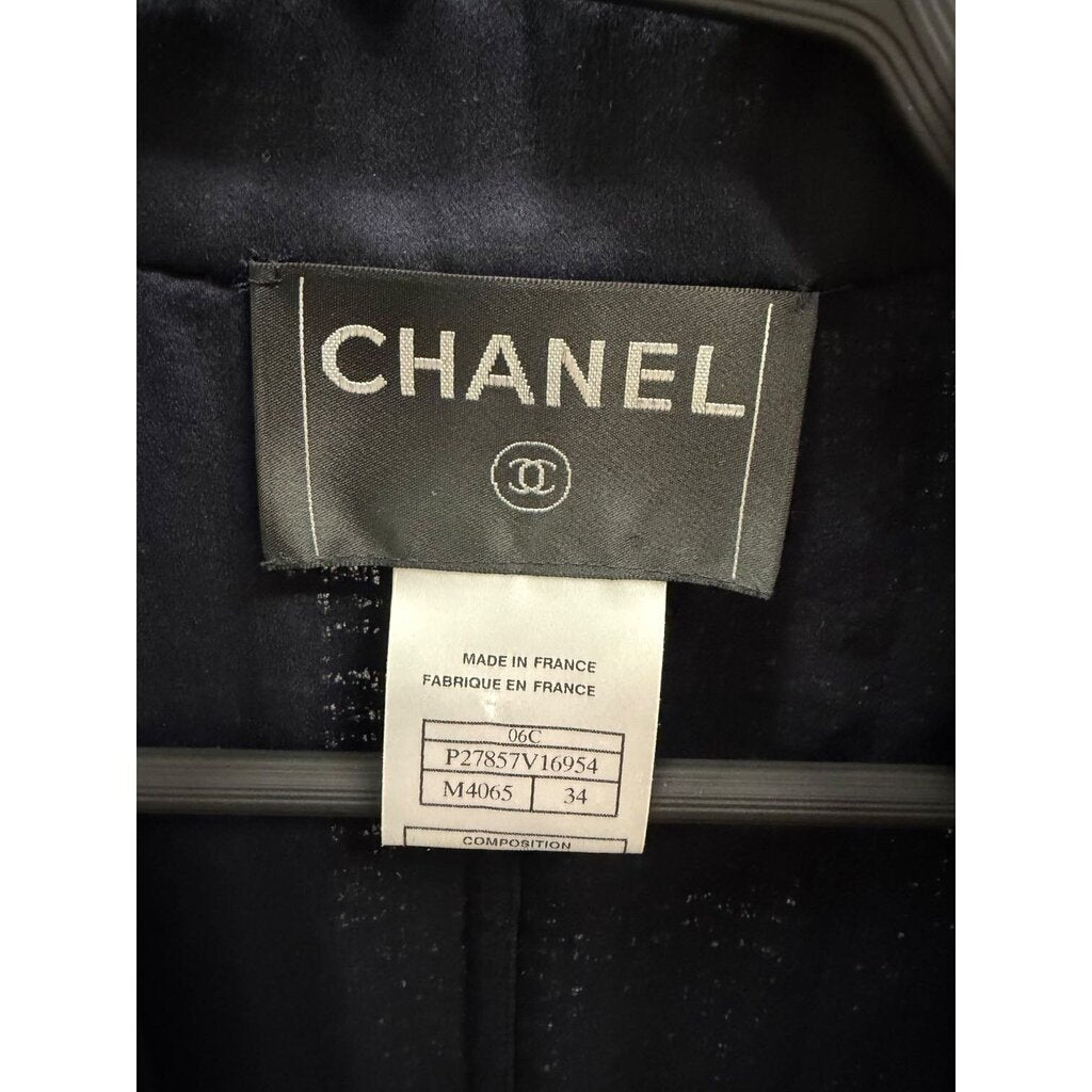 Chanel Tweed 3/4 Sleeve Blazer Navy 34