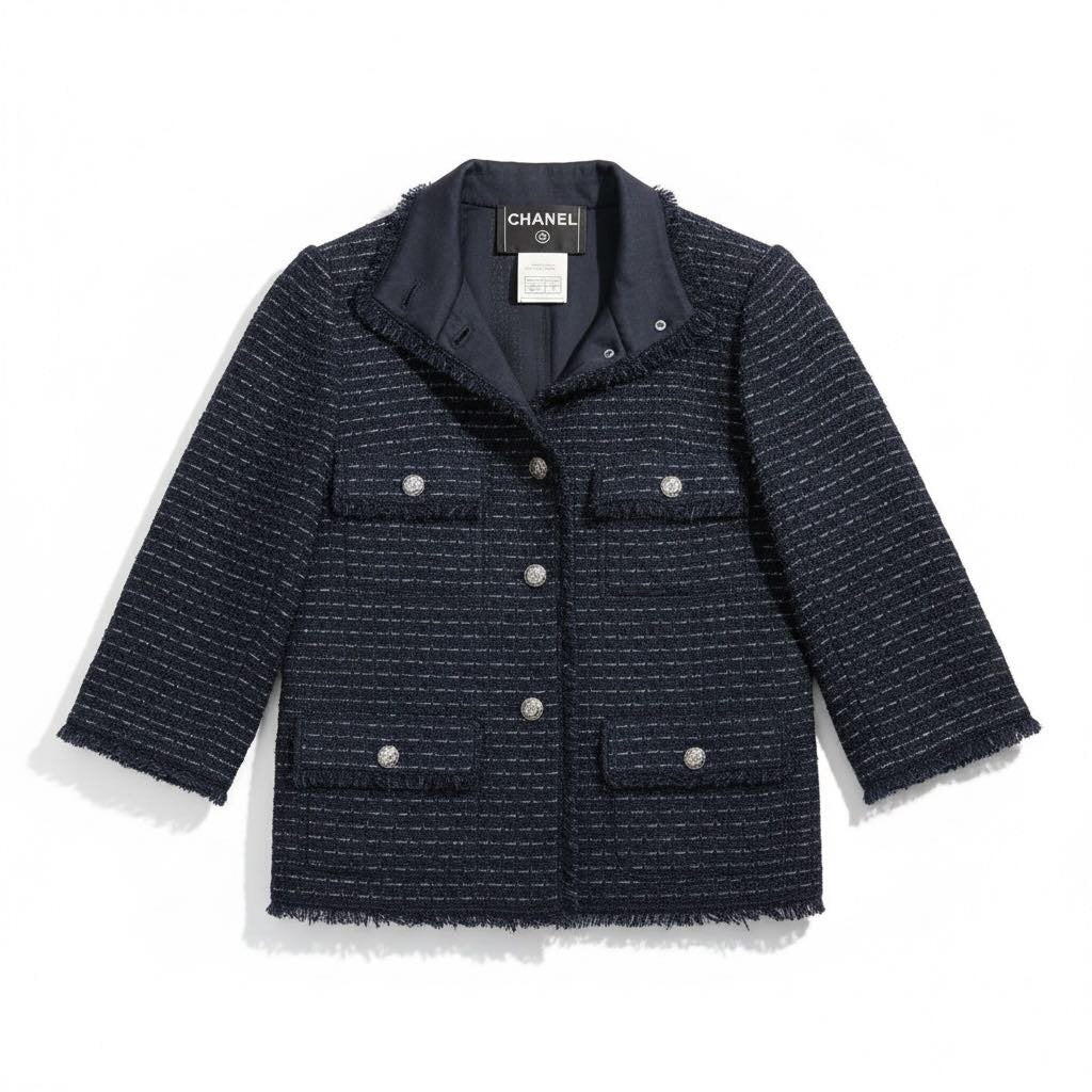 Chanel Tweed 3/4 Sleeve Navy Blazer From 2006 Cruise Collection