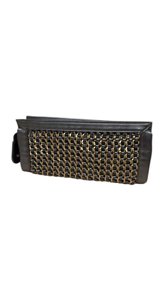 Chanel Metallic Lambskin Chain Embellished Clutch. Zip closure with interlock CC zipper pull.