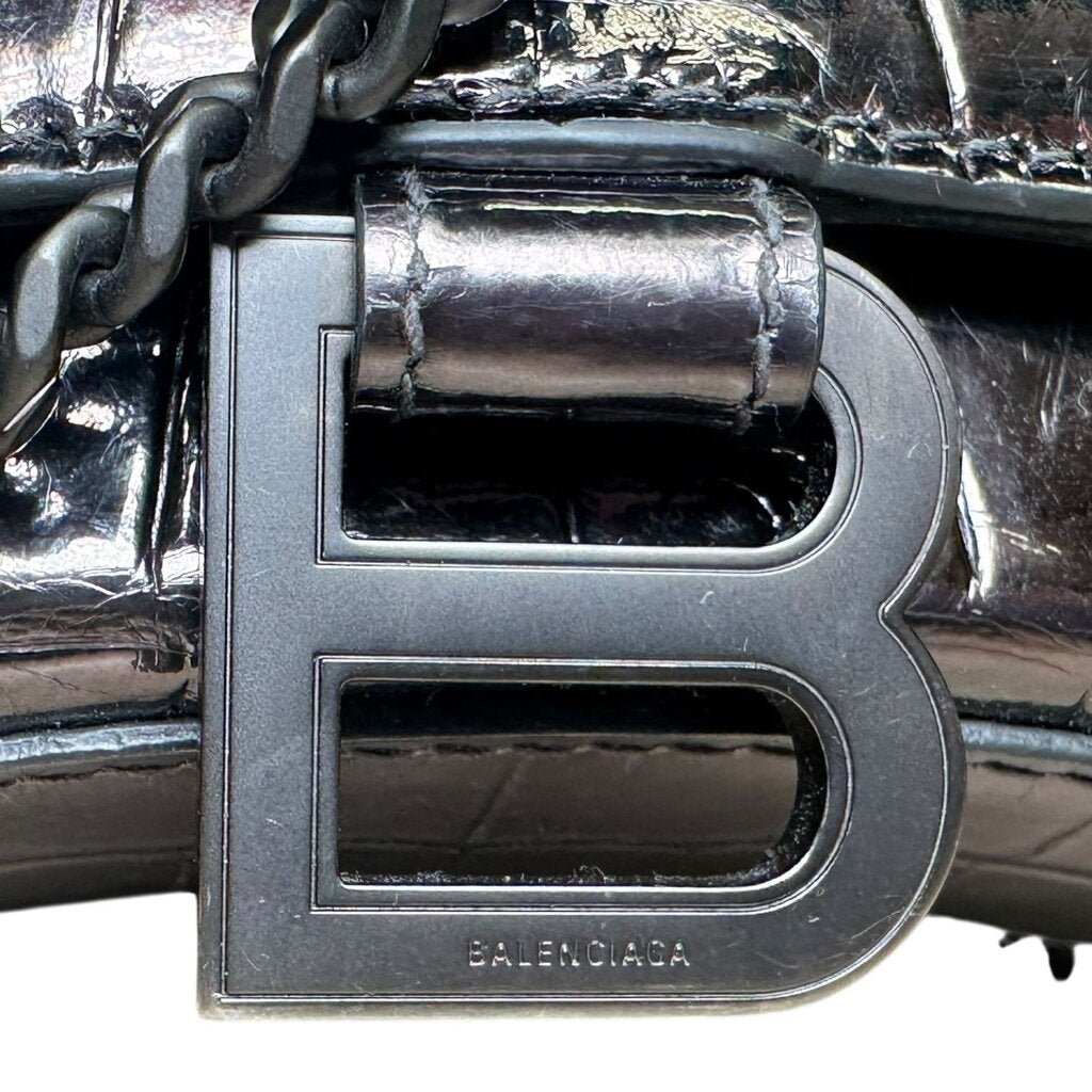 Balenciaga Metallic Calfskin Crocodile Embossed Hourglass Chain Bag Metalic