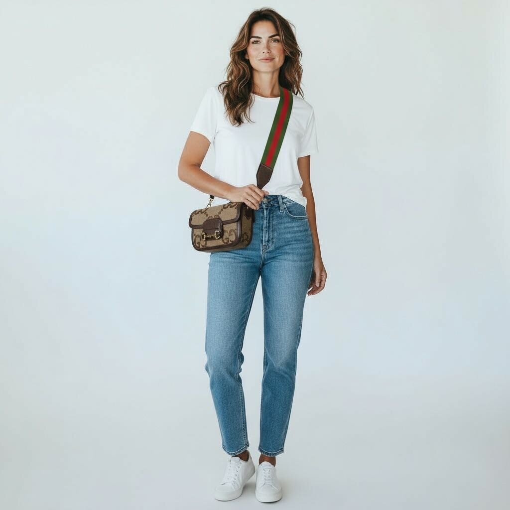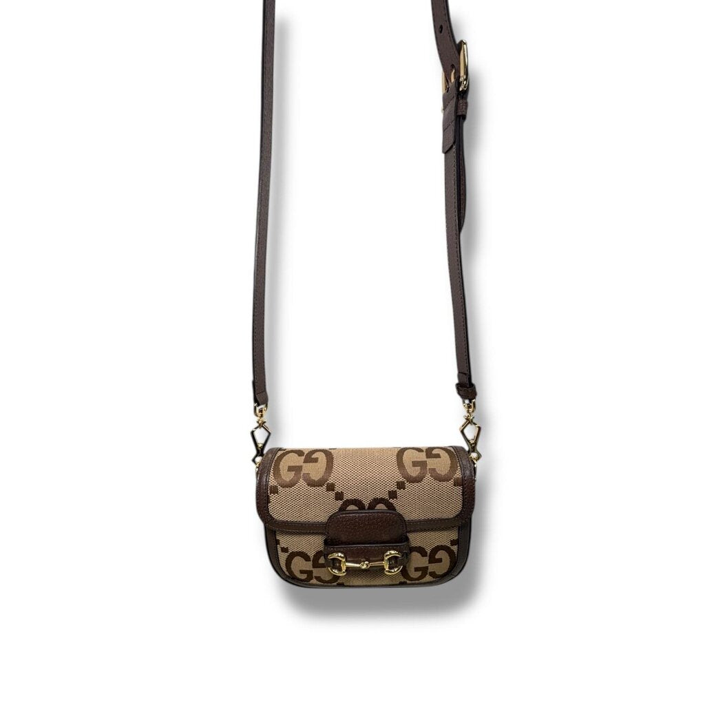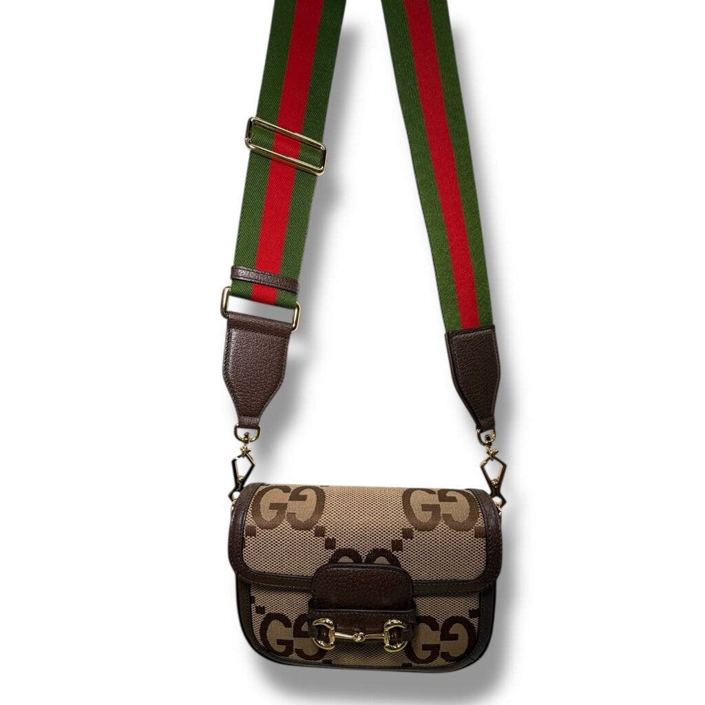 Gucci GG Jumbo Web Horsebit 1955 Canvas Mini Crossbody Bag With Two Straps.