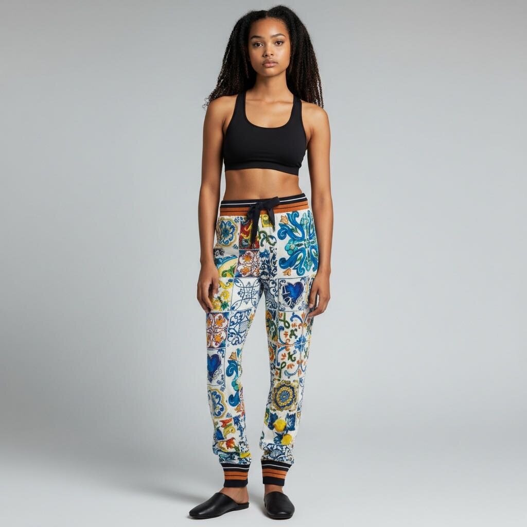 Dolce & Gabbana Cotton Jogger with Majolica Print Multi