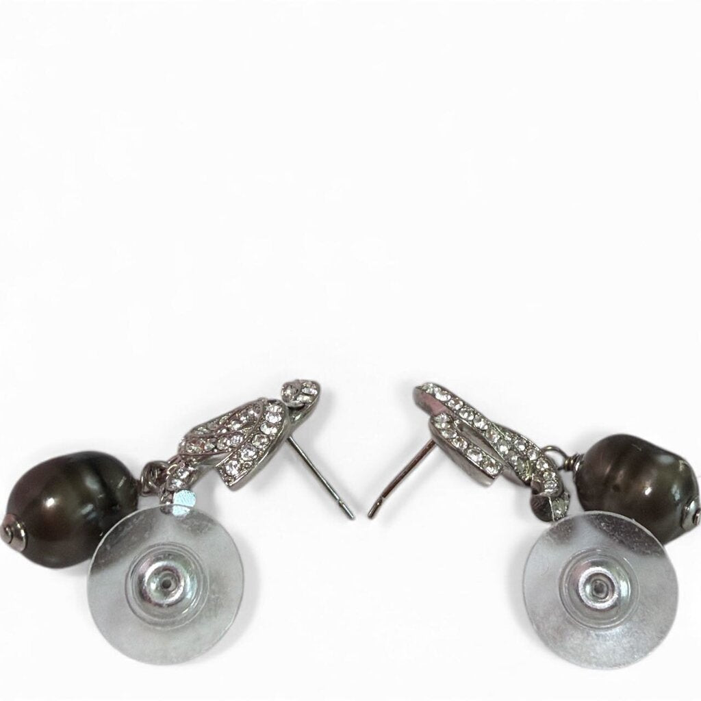 Chanel Crystal CC Logo Resin Pearl 2010 Drop Earrings Silver
