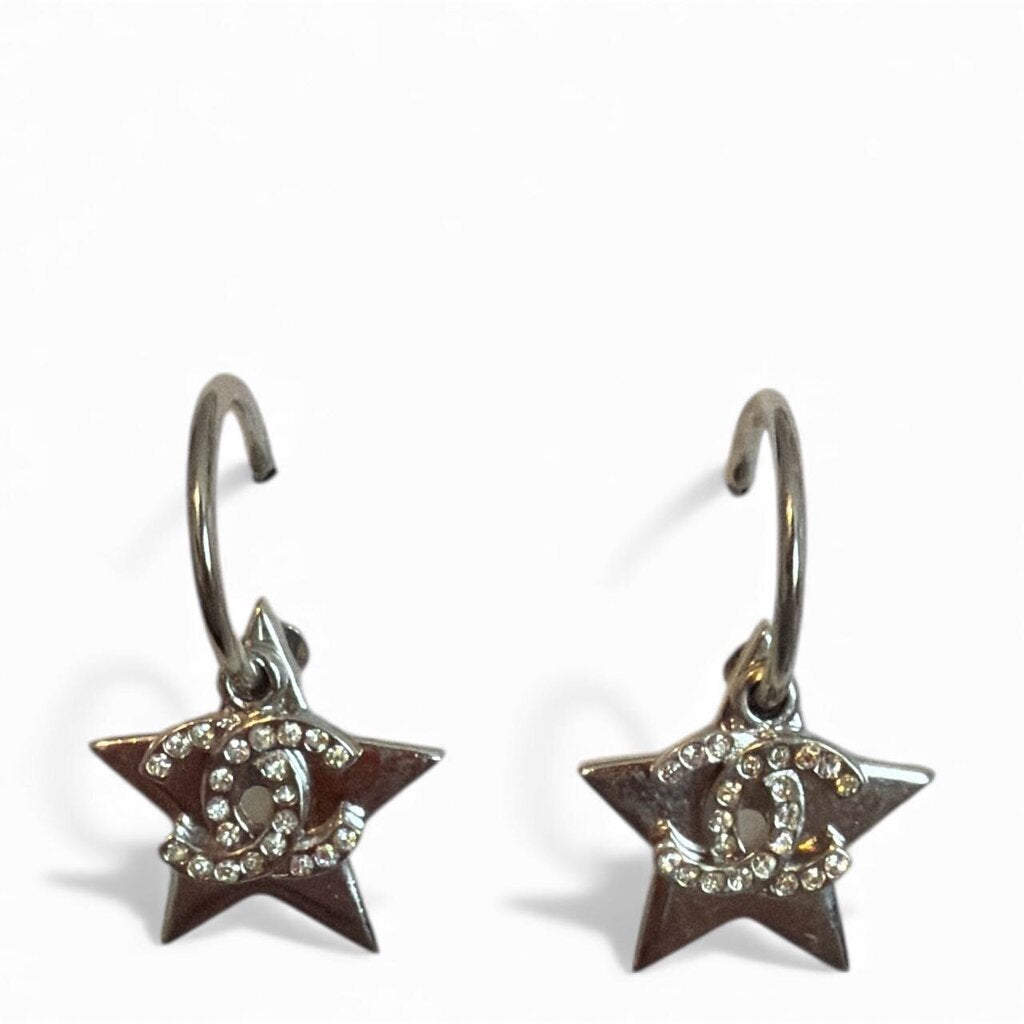Chanel Silver Star with Crystal CC 2011 Drop Earrings Silver