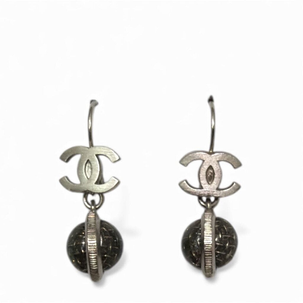 Chanel Silver Plated CC Enamel Ball 2006 Drop Earrings Silver