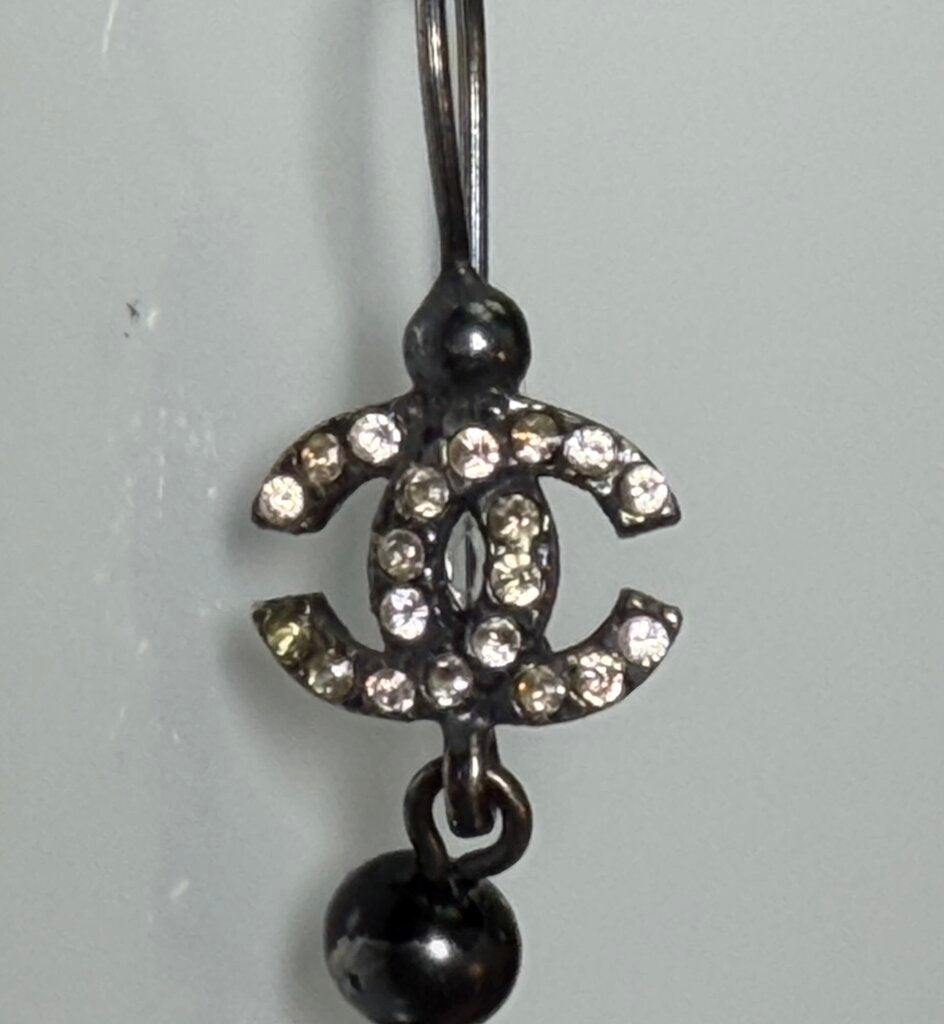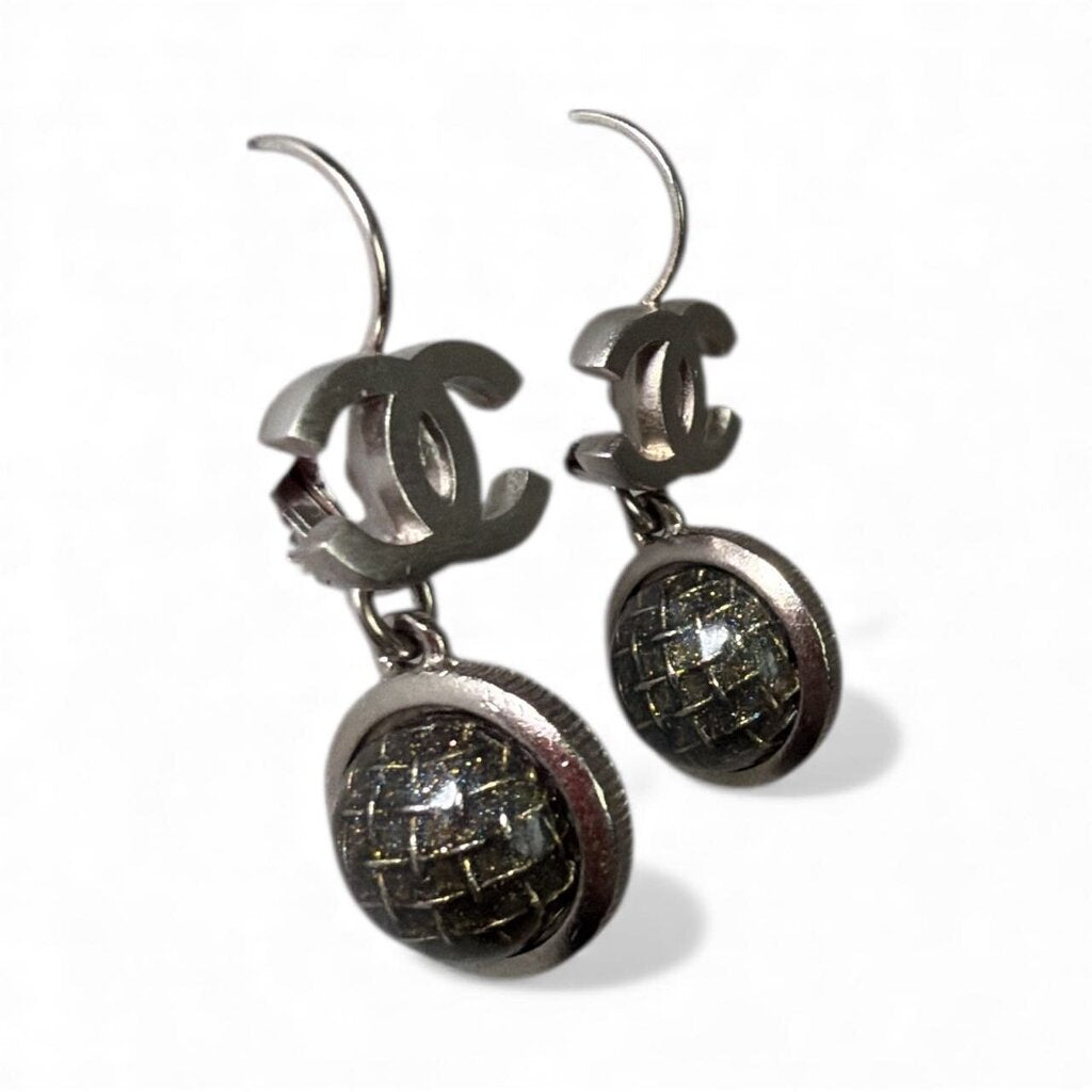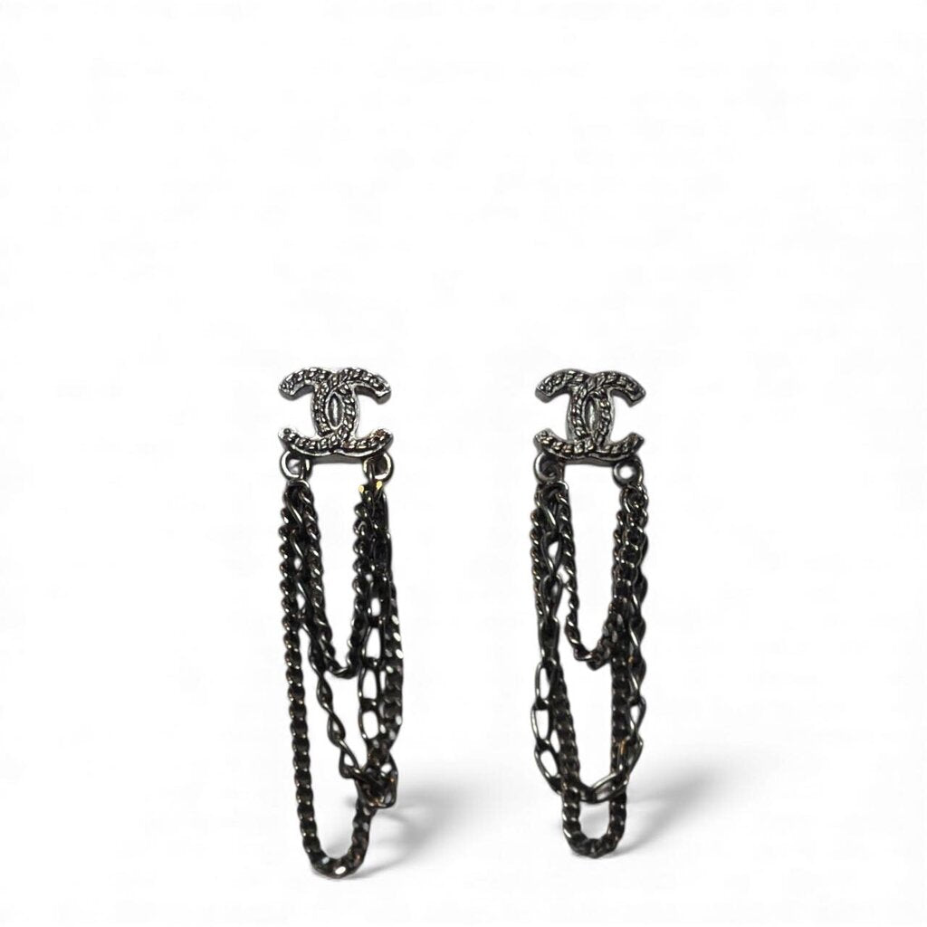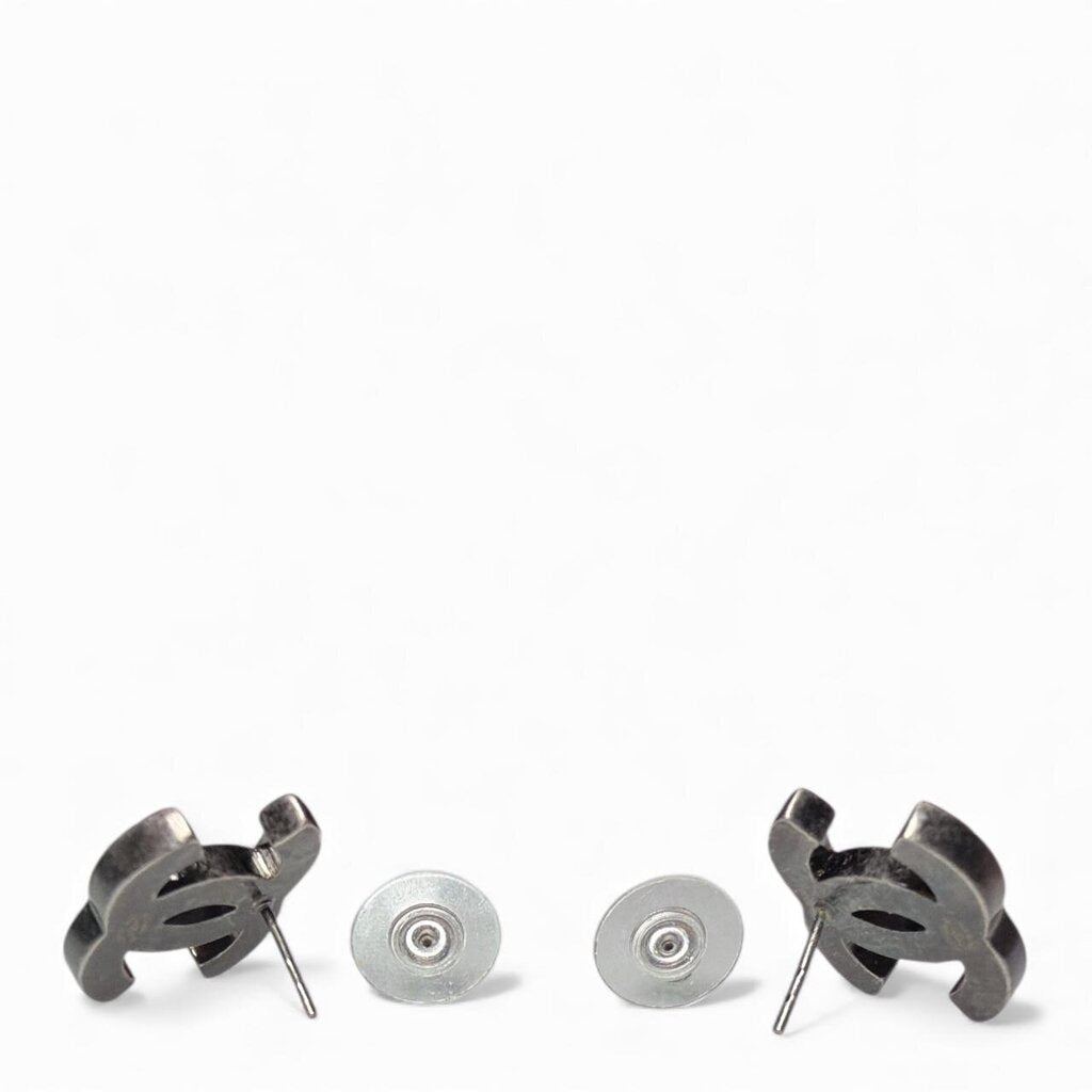 Chanel Interlocking CC Charm on Plated Gunmetal. 2009 Earrings Black