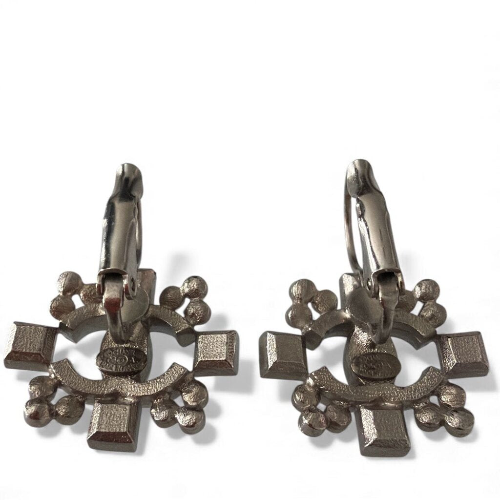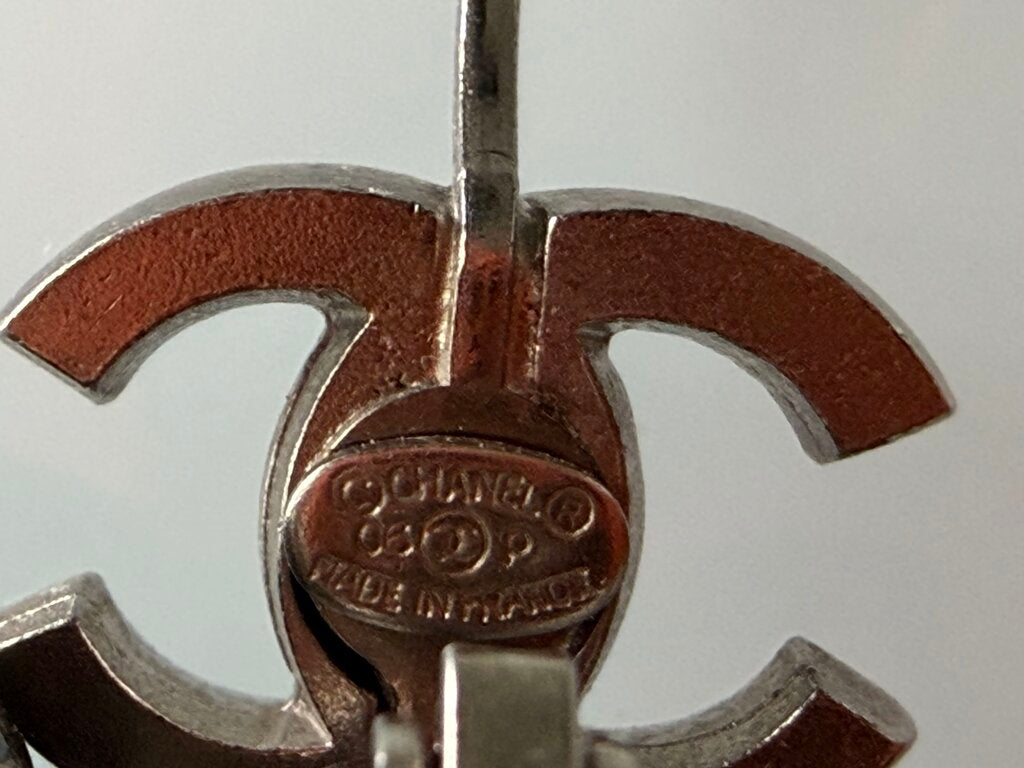 Chanel Chain Imprinted CC With Looping Gun Metal Chain 2008 Earrings Silver