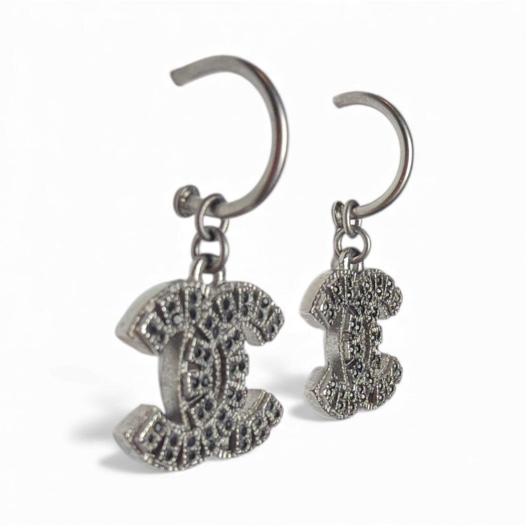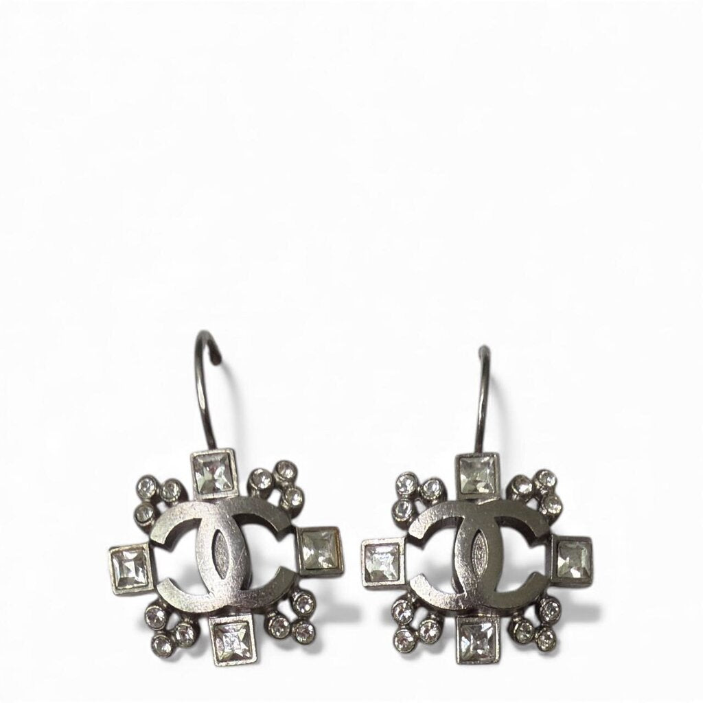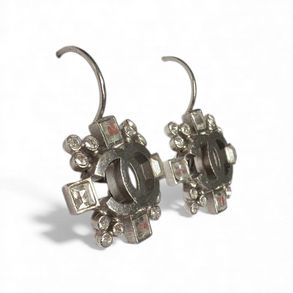 Chanel Silver Plated CC with Crystals 2006 Drop Earrings Silver