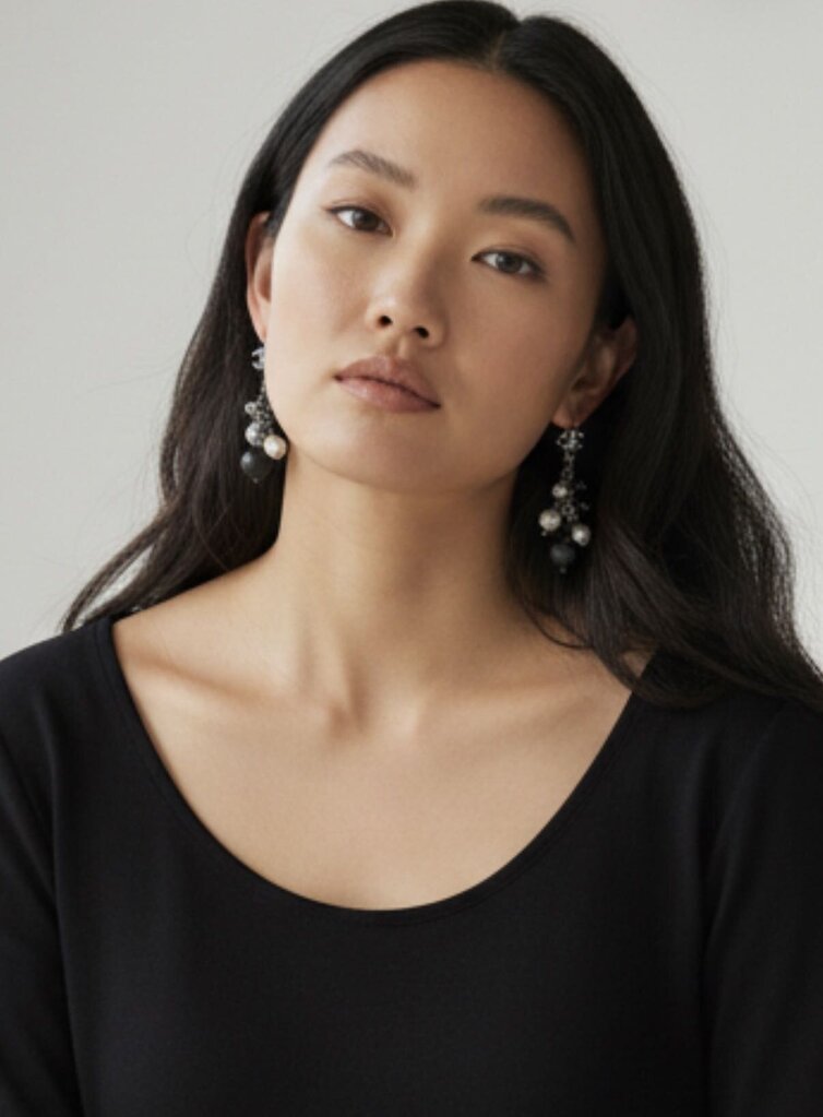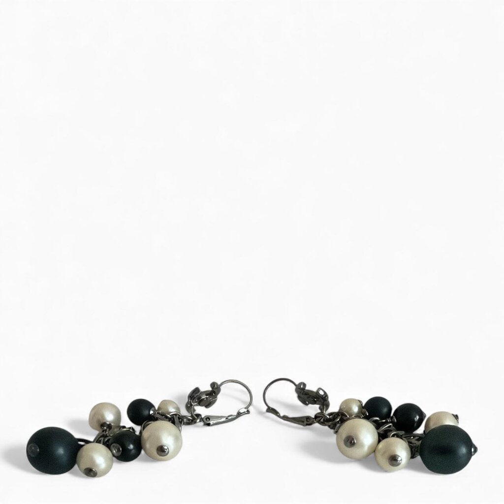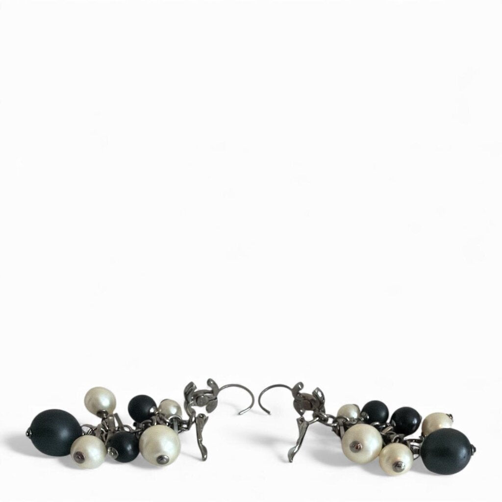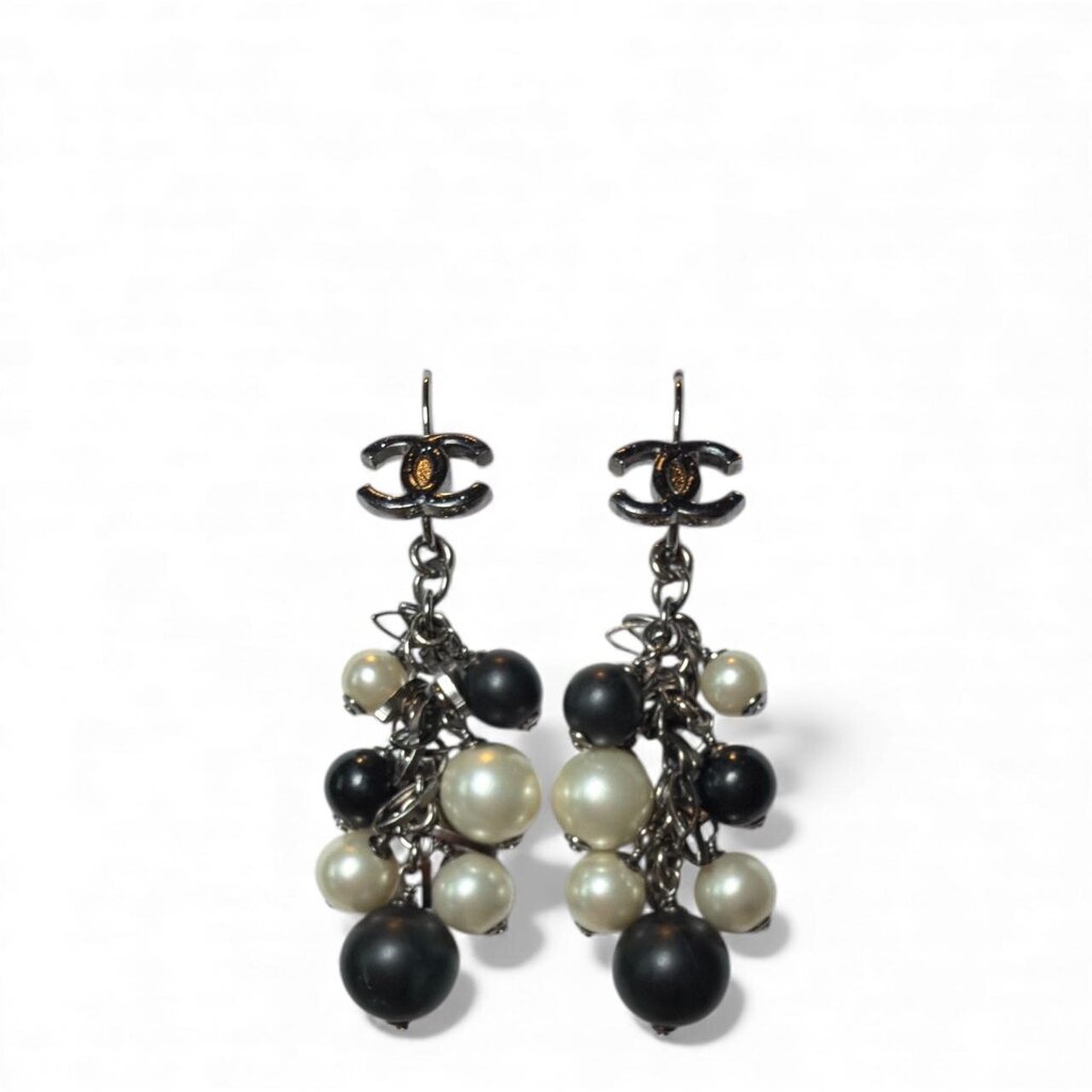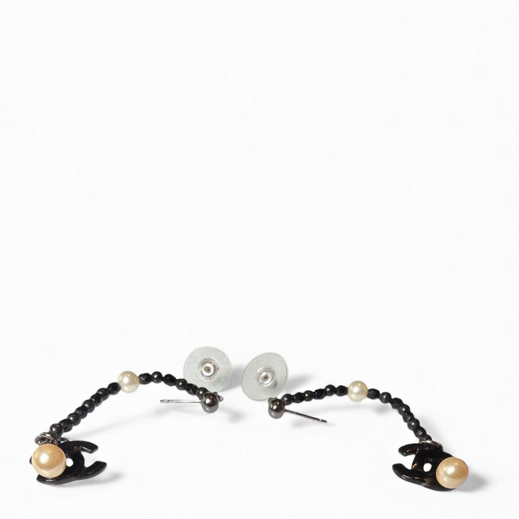 Chanel Faux Pearl, Black Beads and Black CC Charm 2007 Earrings Silver