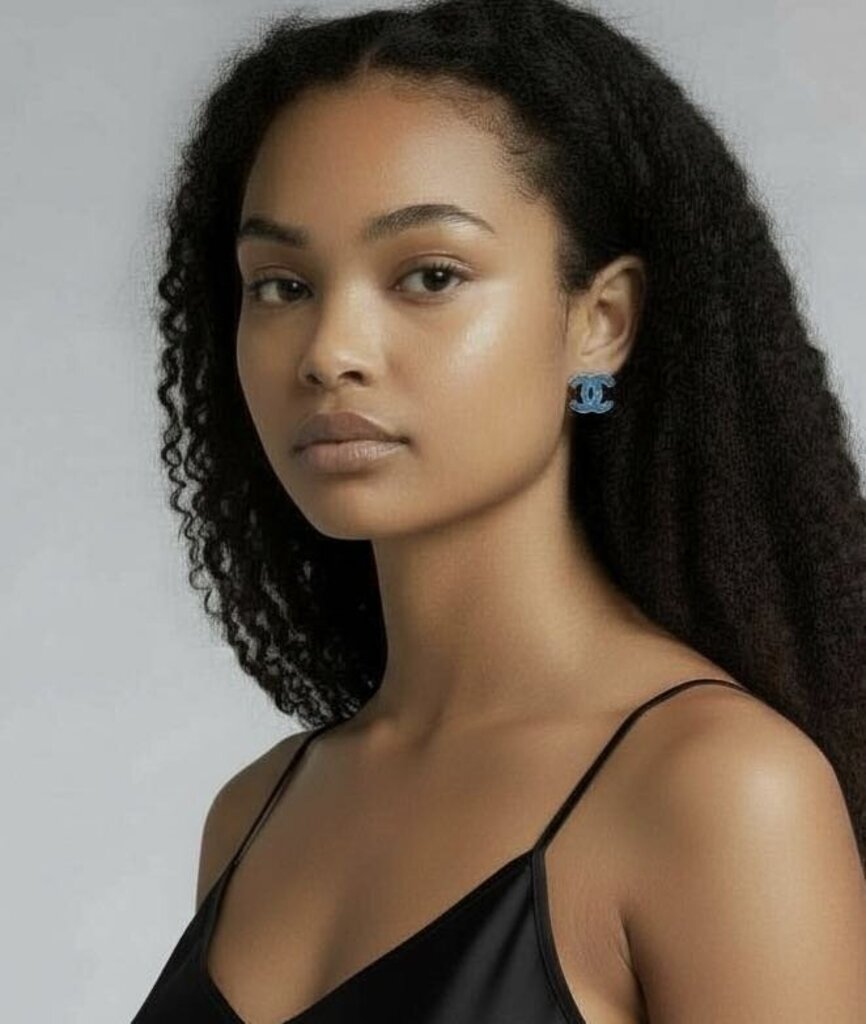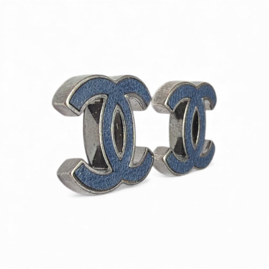 Chanel Interlocking CC Post 2012 Earrings Blue