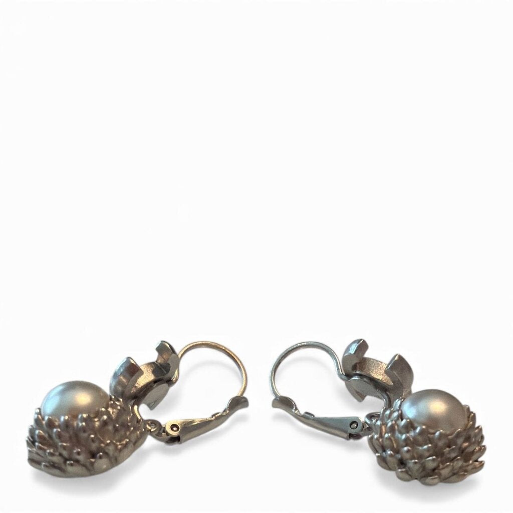 Chanel Interlocking CC with Pearl Charm 2005 Earring Silver