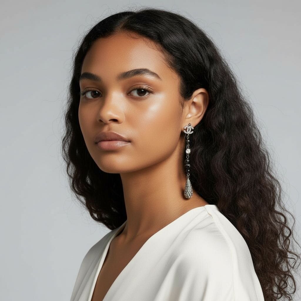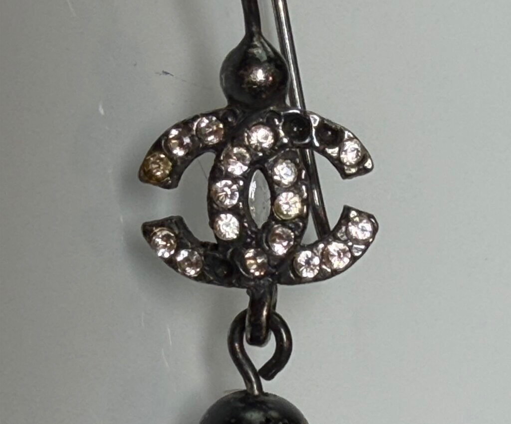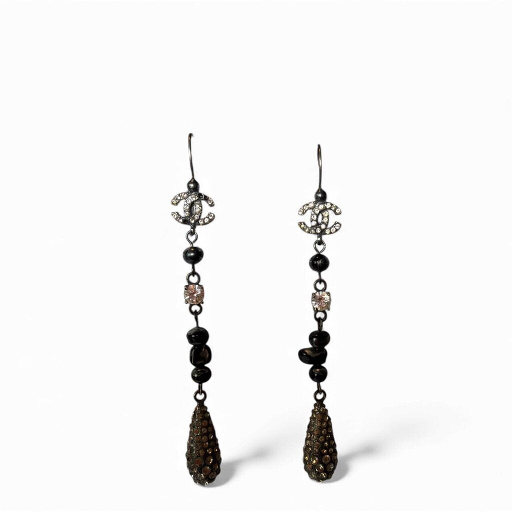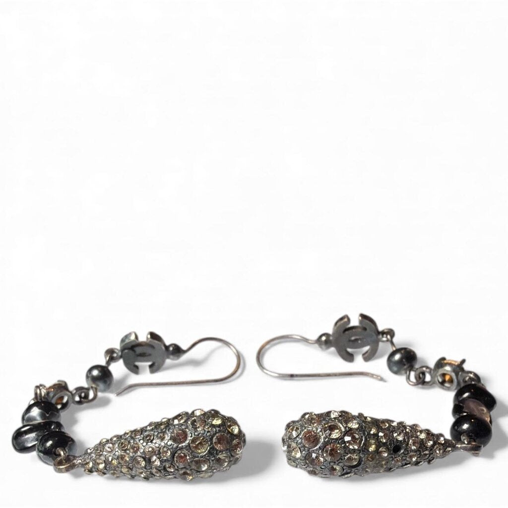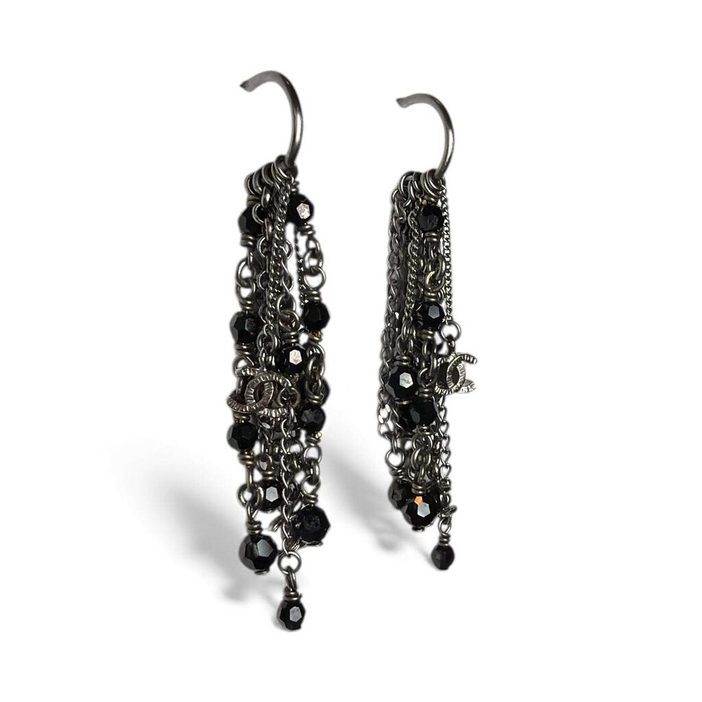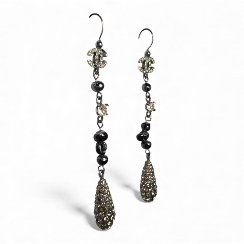 Chanel Crystal CC and Teardrop with Black Beads 2004 Drop Earrings Silver