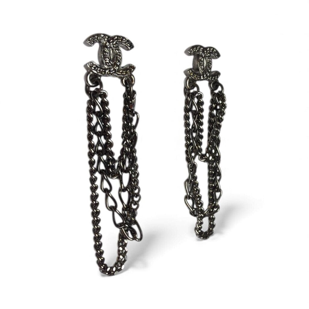 Chanel Chain Imprinted CC With Looping Gun Metal Chain 2008 Earrings Silver