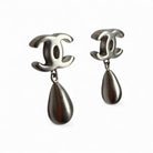 Chanel Interlocking CC Brushed Plated Silver Tear Drop Earrings Silver