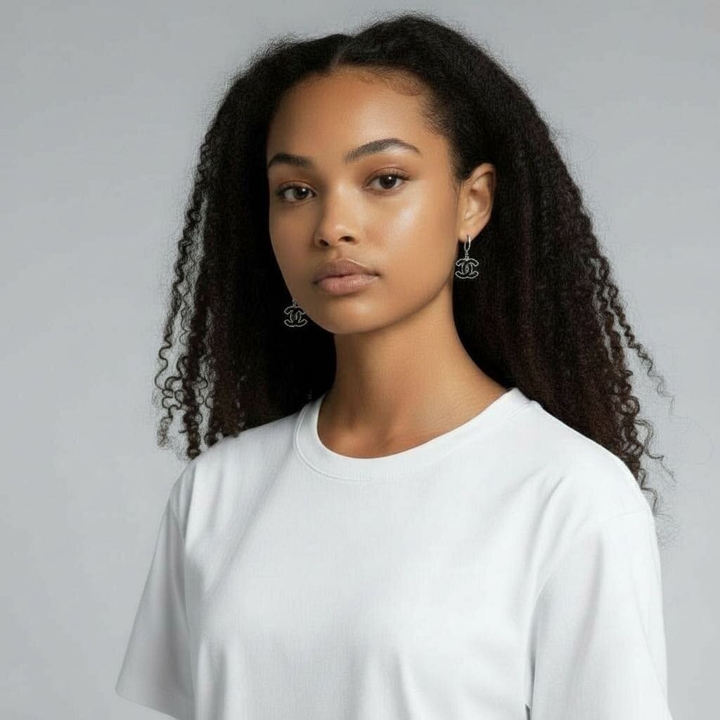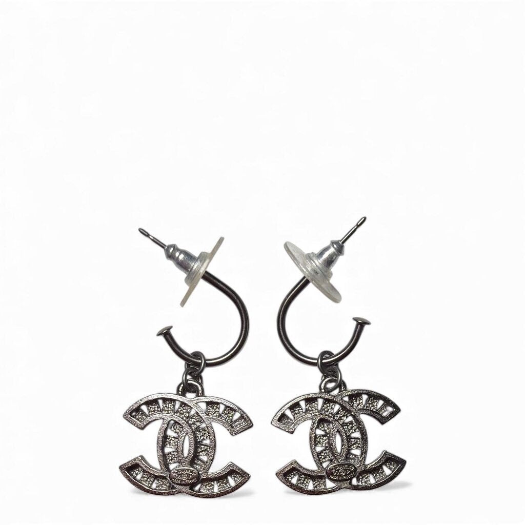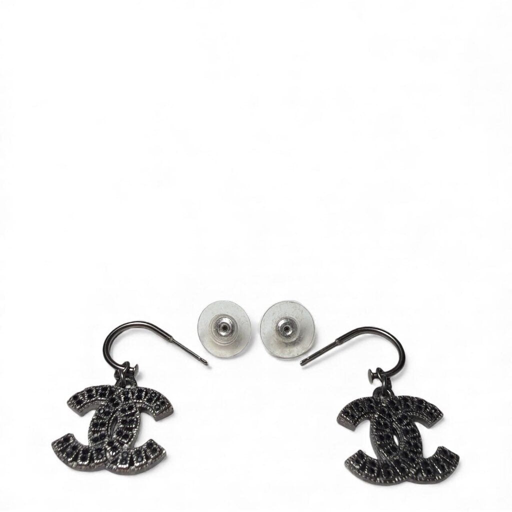 Chanel Interlocking CC Charm on Plated Gunmetal. 2009 Earrings Black