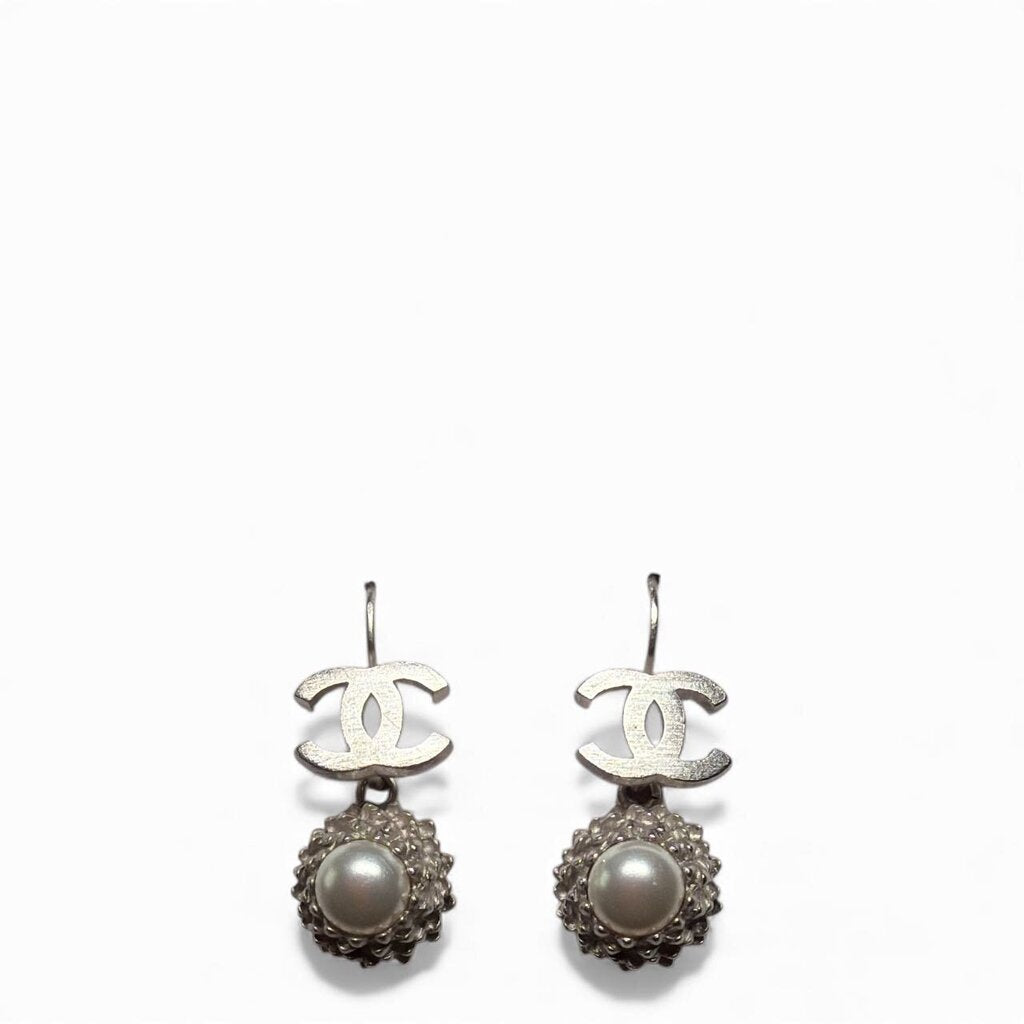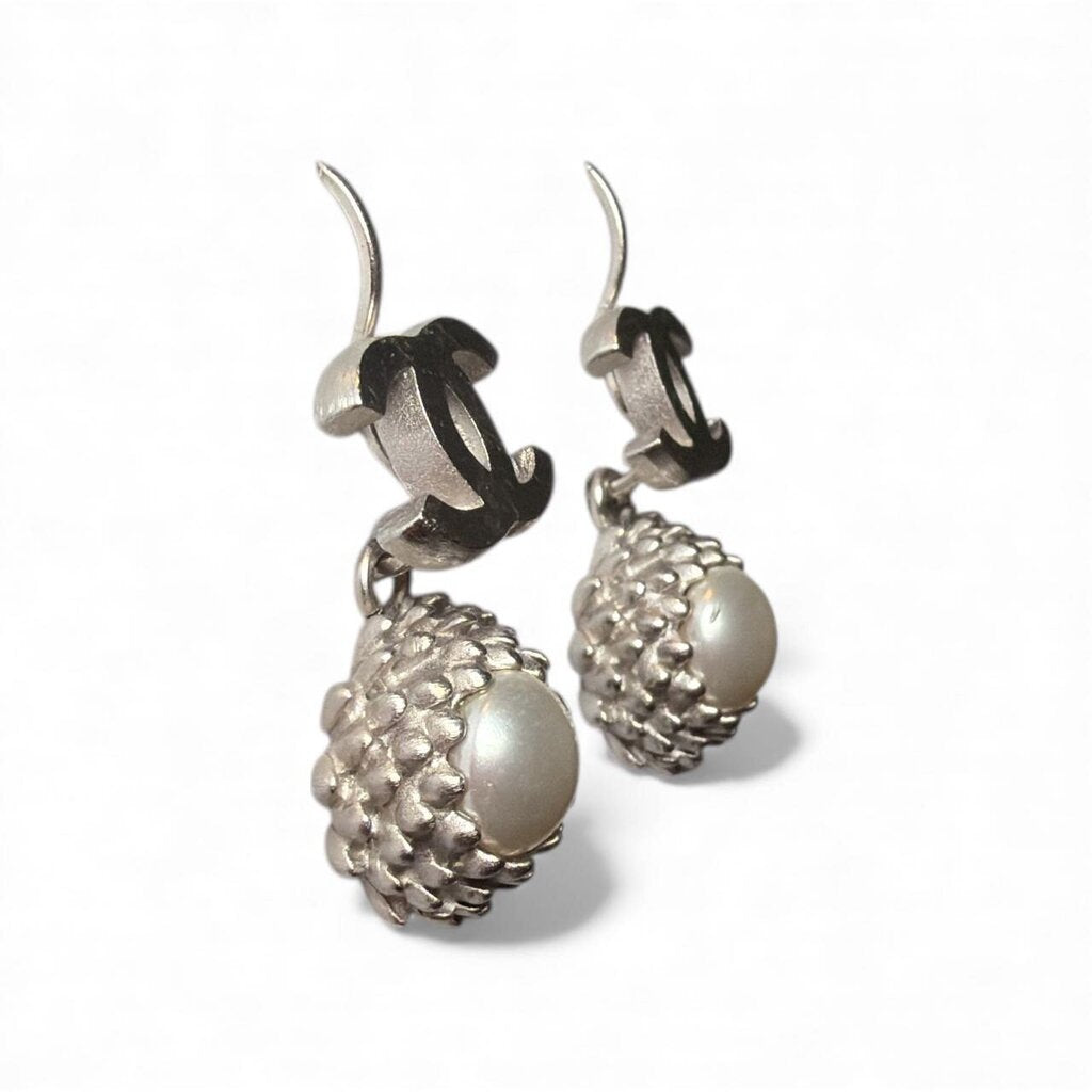 Chanel Interlocking CC with Pearl Charm 2005 Earring Silver