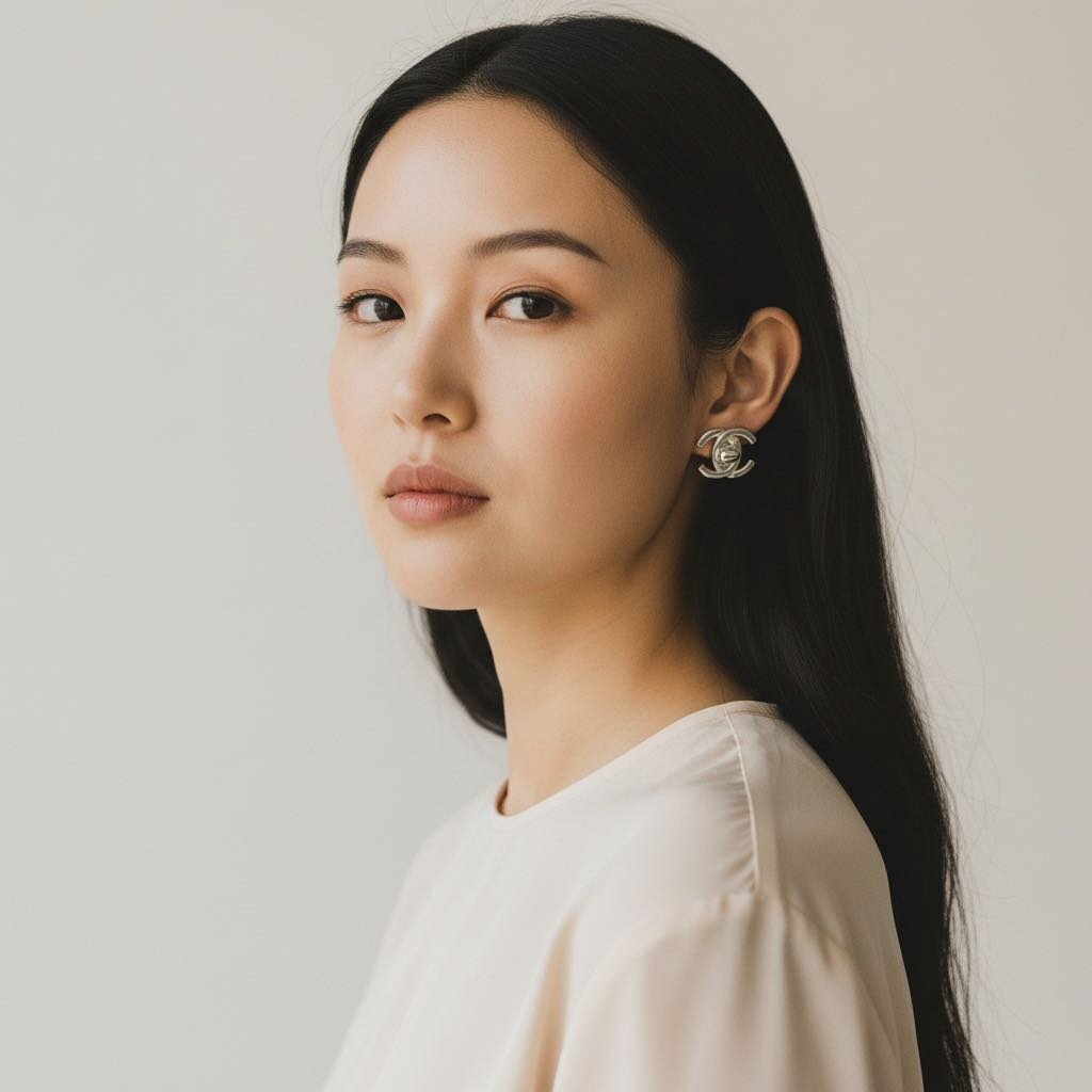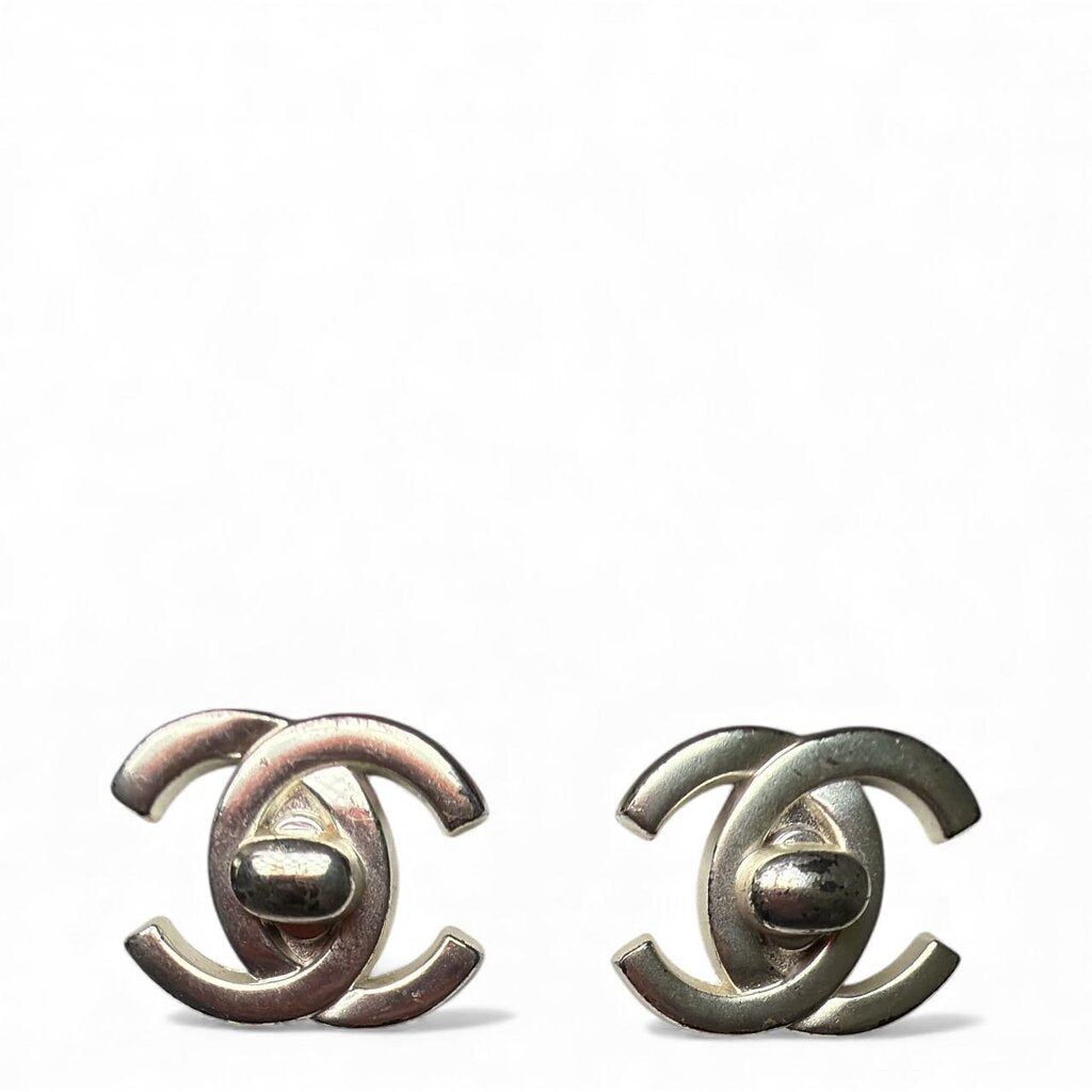 Chanel Silver Plated Turn Lock Clip-on Earrings.  From Sprint 1996 Collection