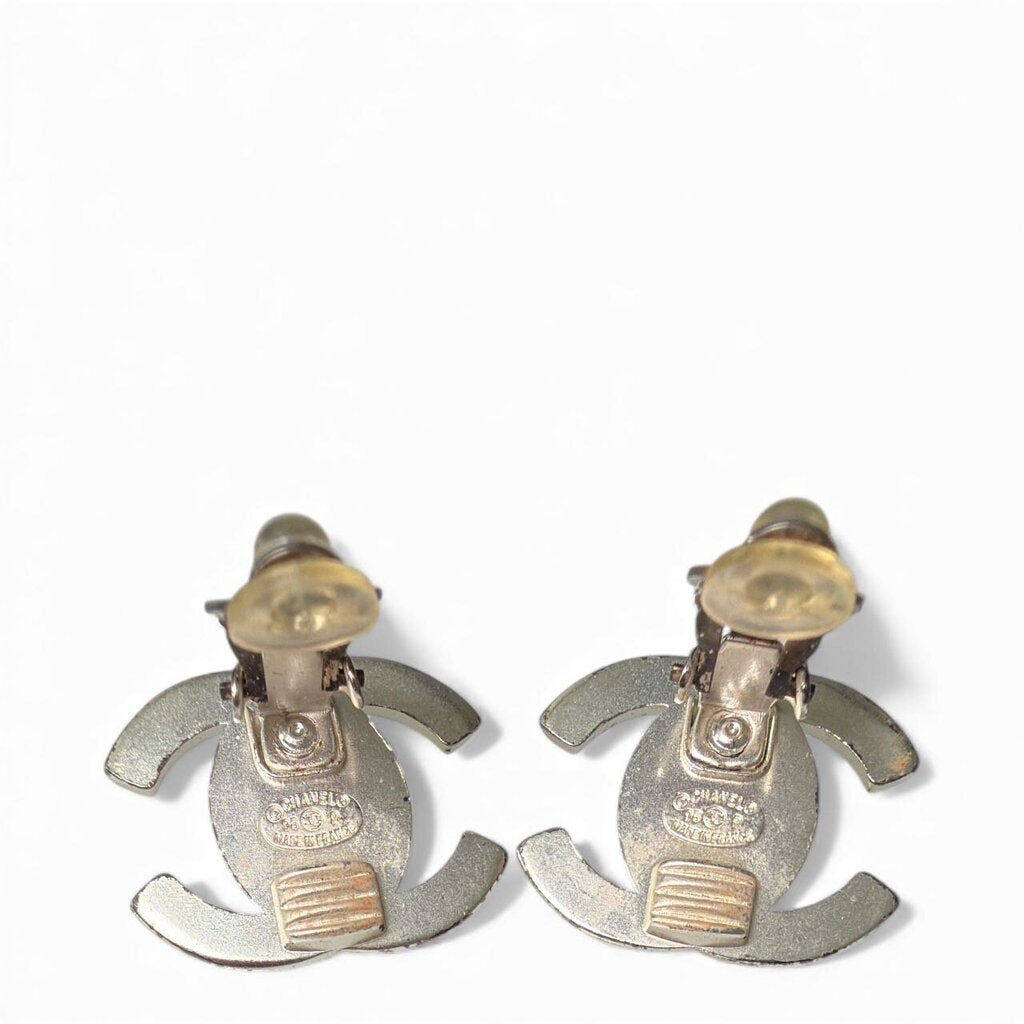 Chanel Silver Plated Turn Lock 1996 Clip-on Earrings Silver