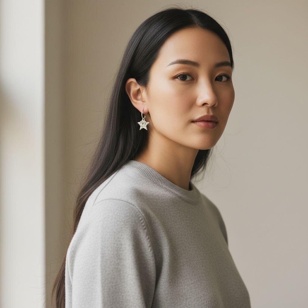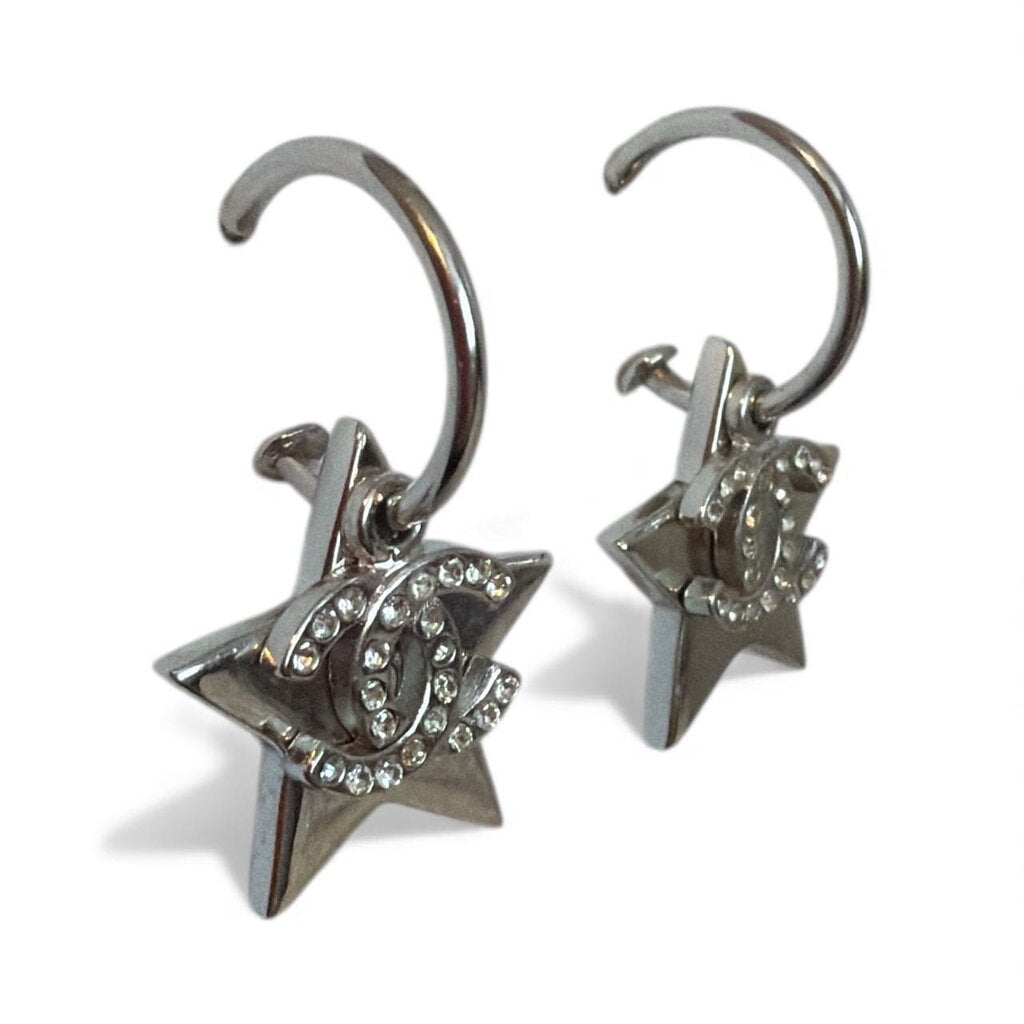 Chanel Silver Star with Crystal CC 2011 Drop Earrings Silver