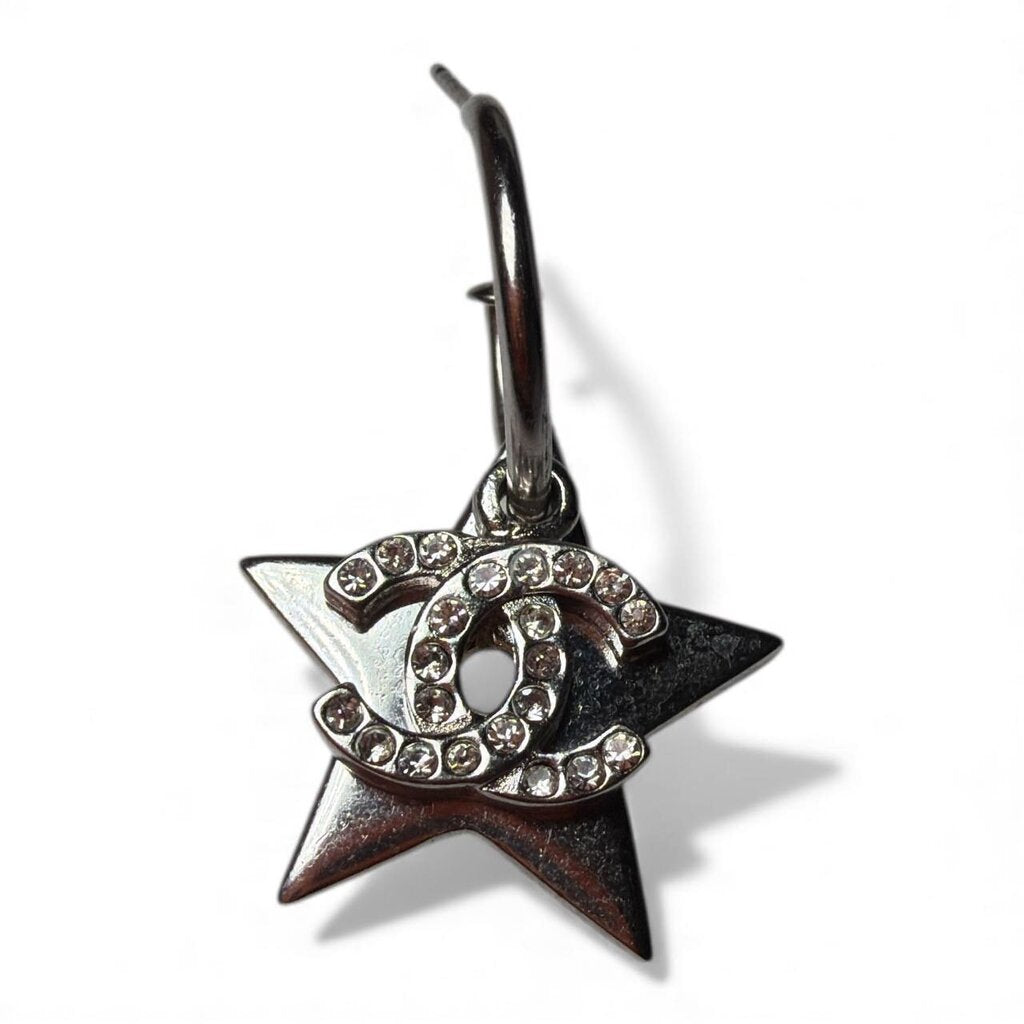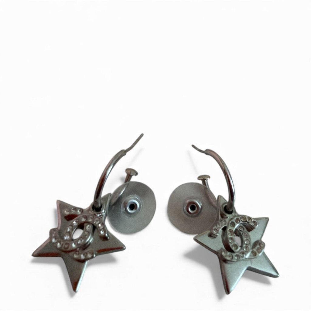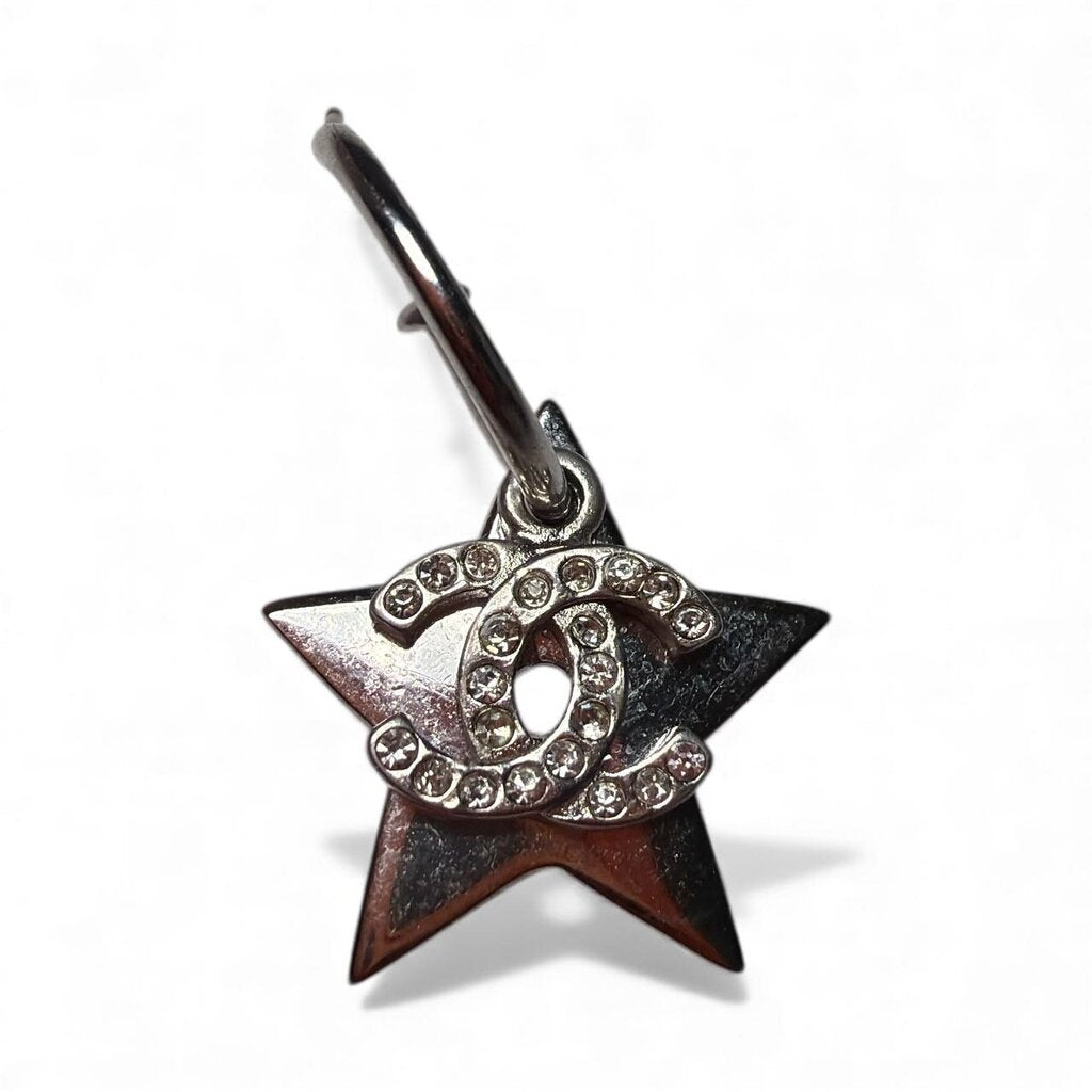 Chanel Silver Plated Crystal CC Charm with Silver Plated Star Drop Earrings. From the 2011 Cruise Collection. Made in France.