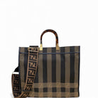 Fendi FF Sunshine Pequin Bucket Tote Bag Brown Large