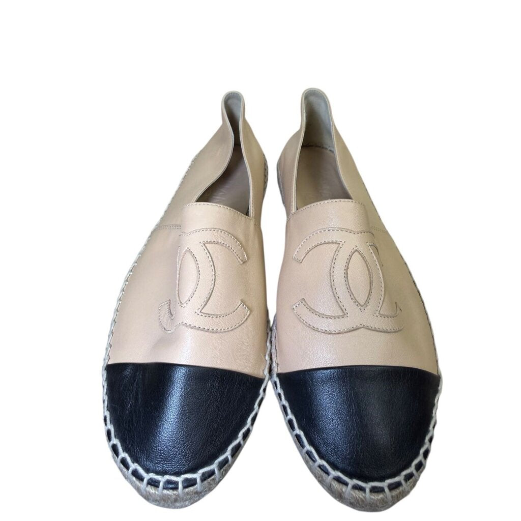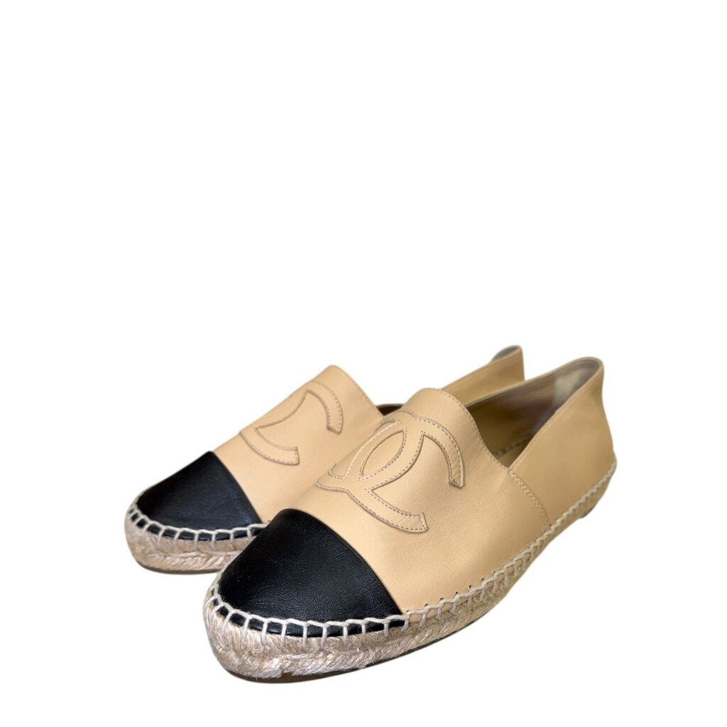 Chanel CC Cap Toe Leather Two Tone Beige & Black Espadrilles