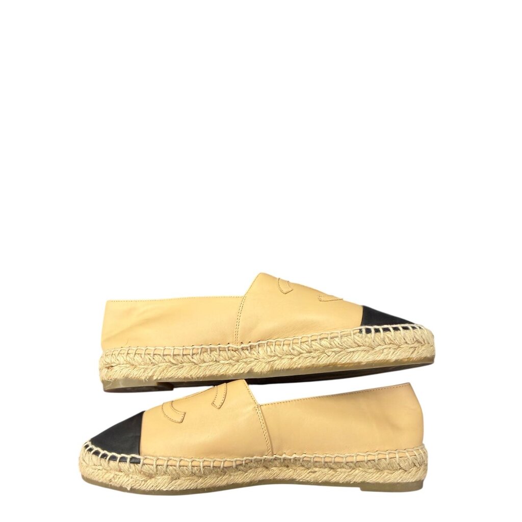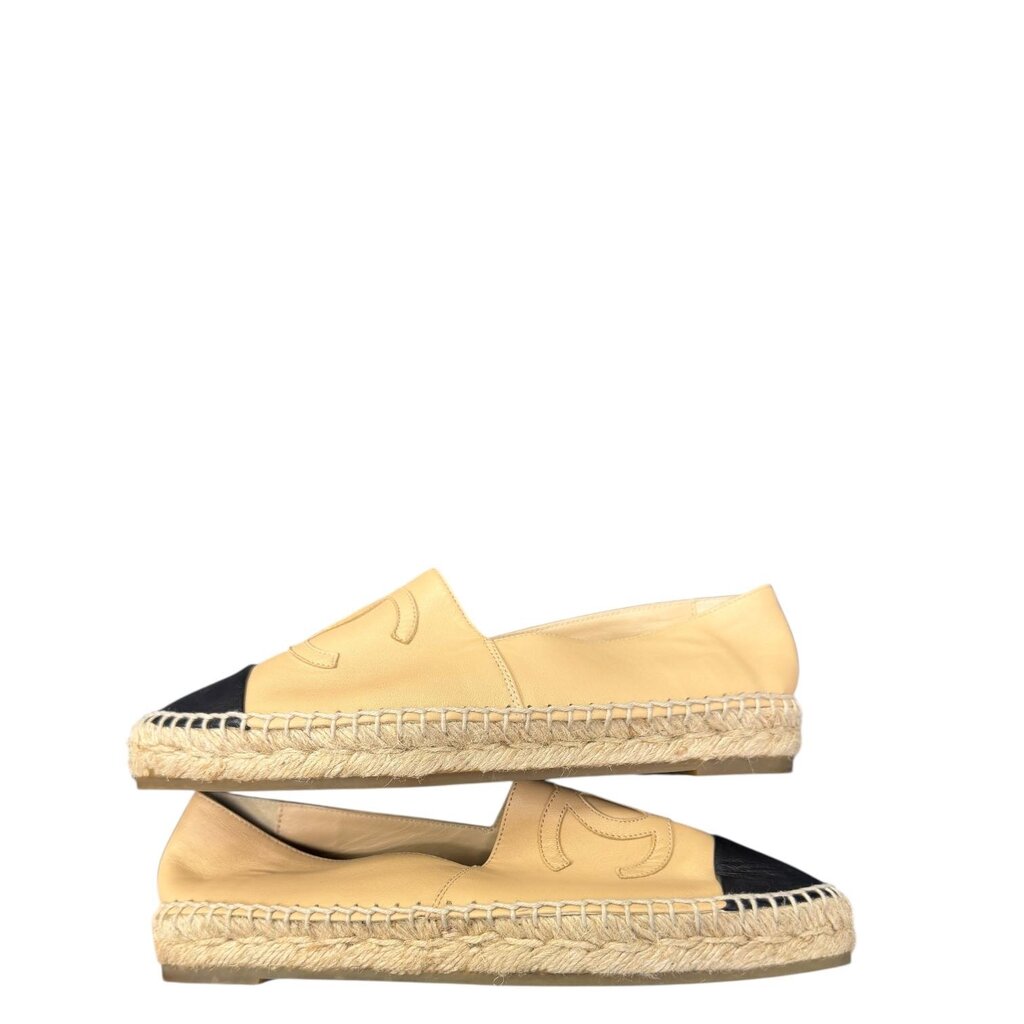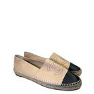 Chanel CC Cap Toe Leather Espadrilles Beige 38