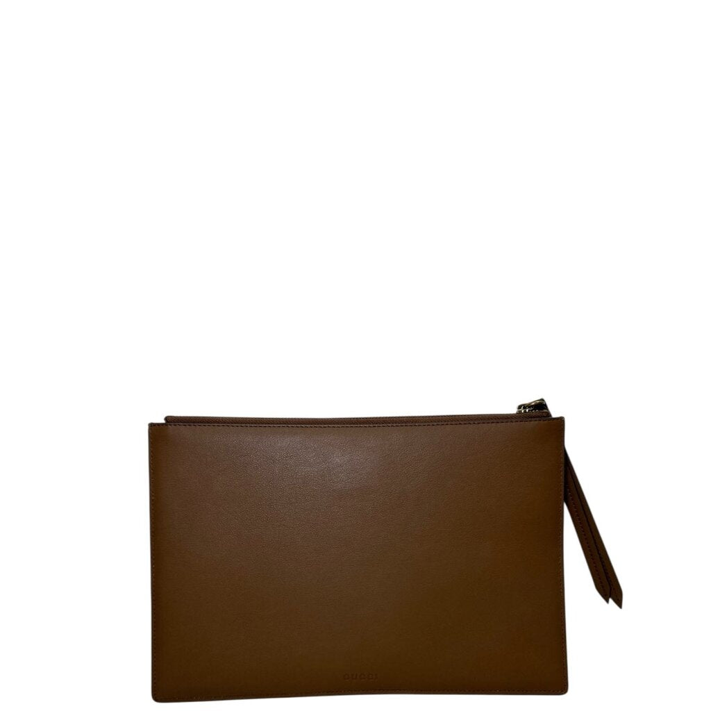 Gucci GG Monogram Web Kingsnake Embroidered Zip Clutch Brown