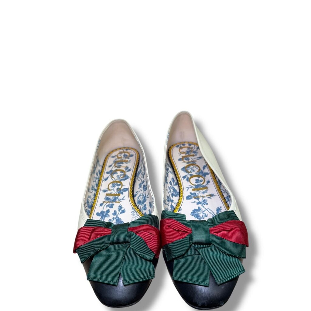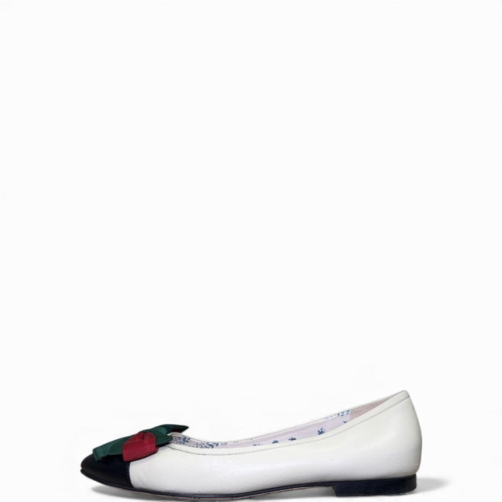 Gucci Web Cap Top Ballet Flats Cream 39