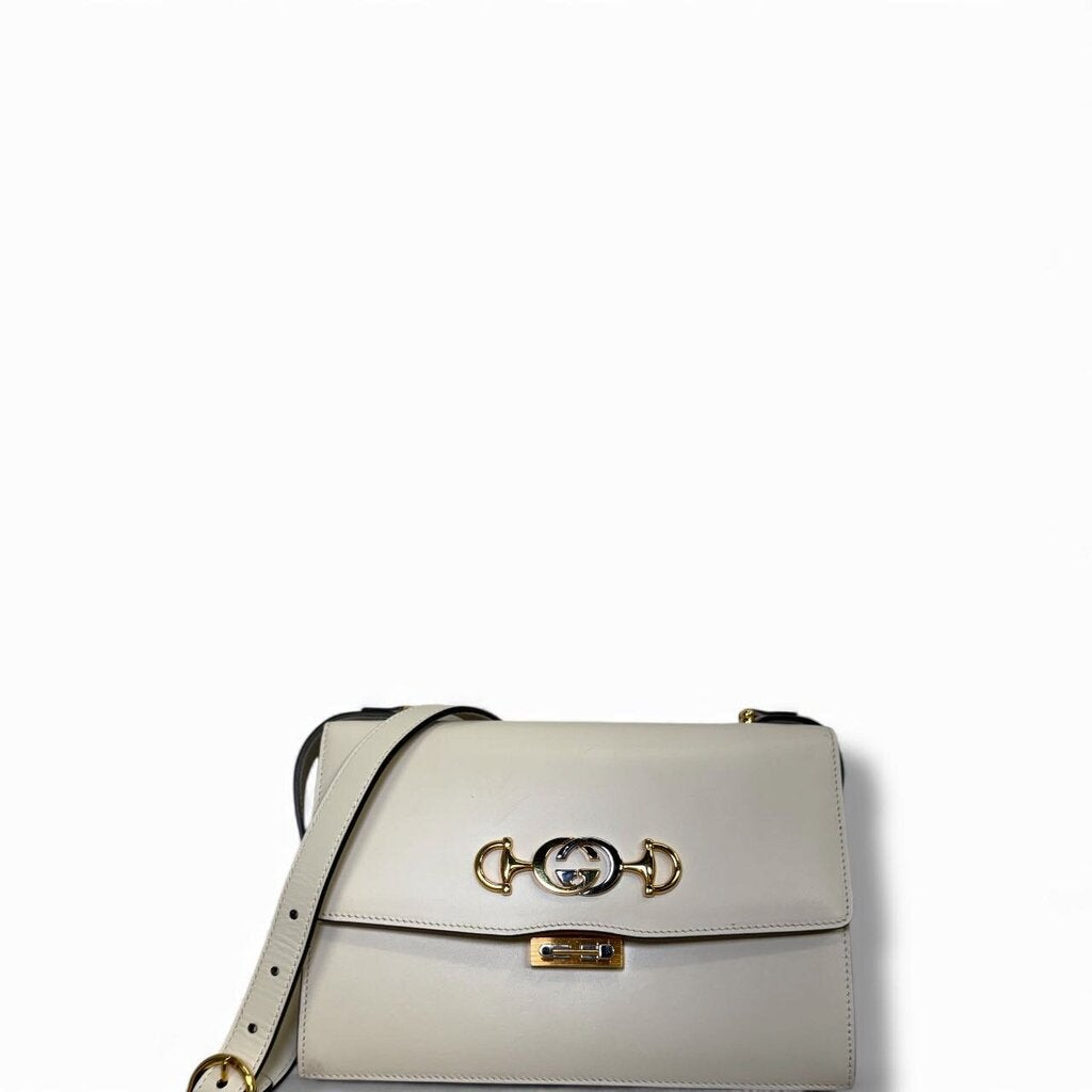 Gucci Zumi Flap Grainy Leather Shoulder Bag Cream