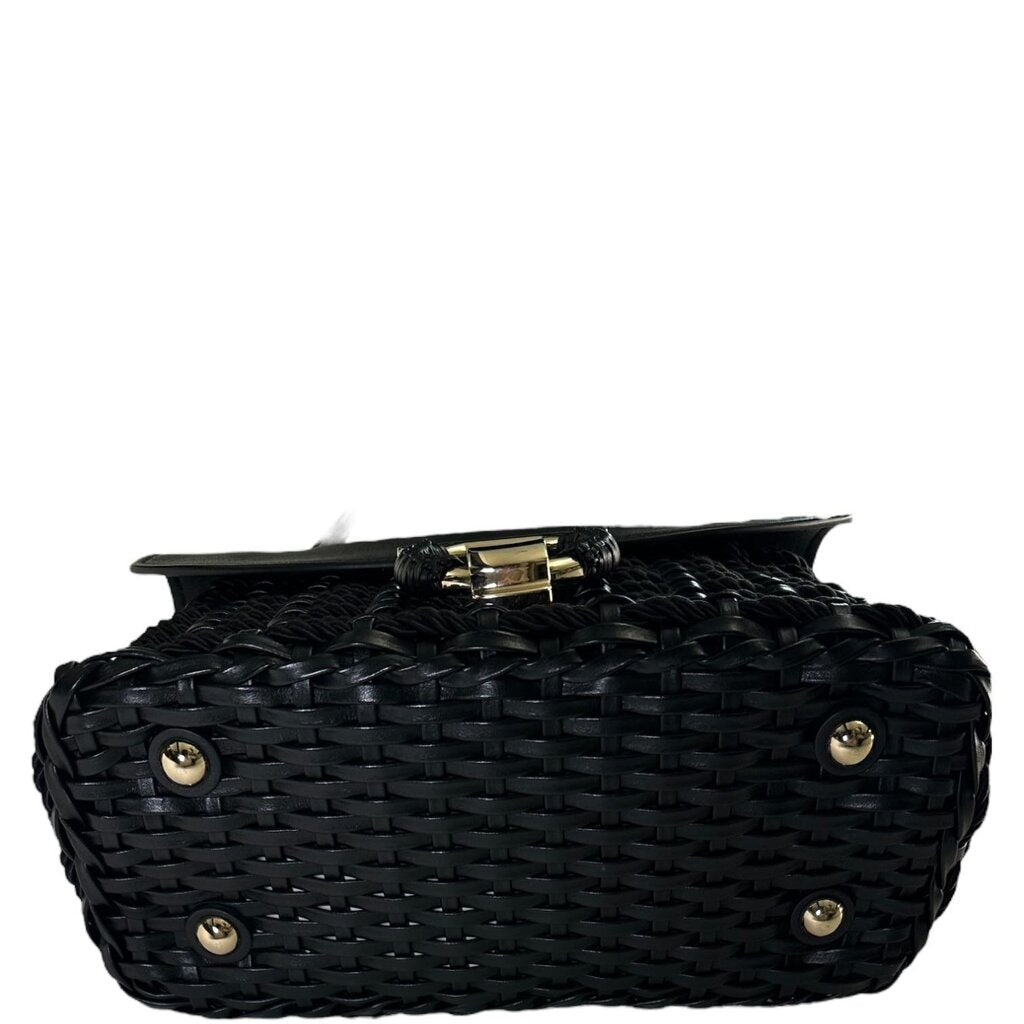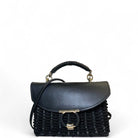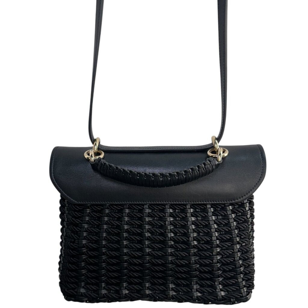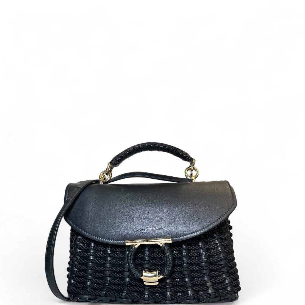 Ferragamo Calfskin Wicker Margot Top Handle Satchel Black