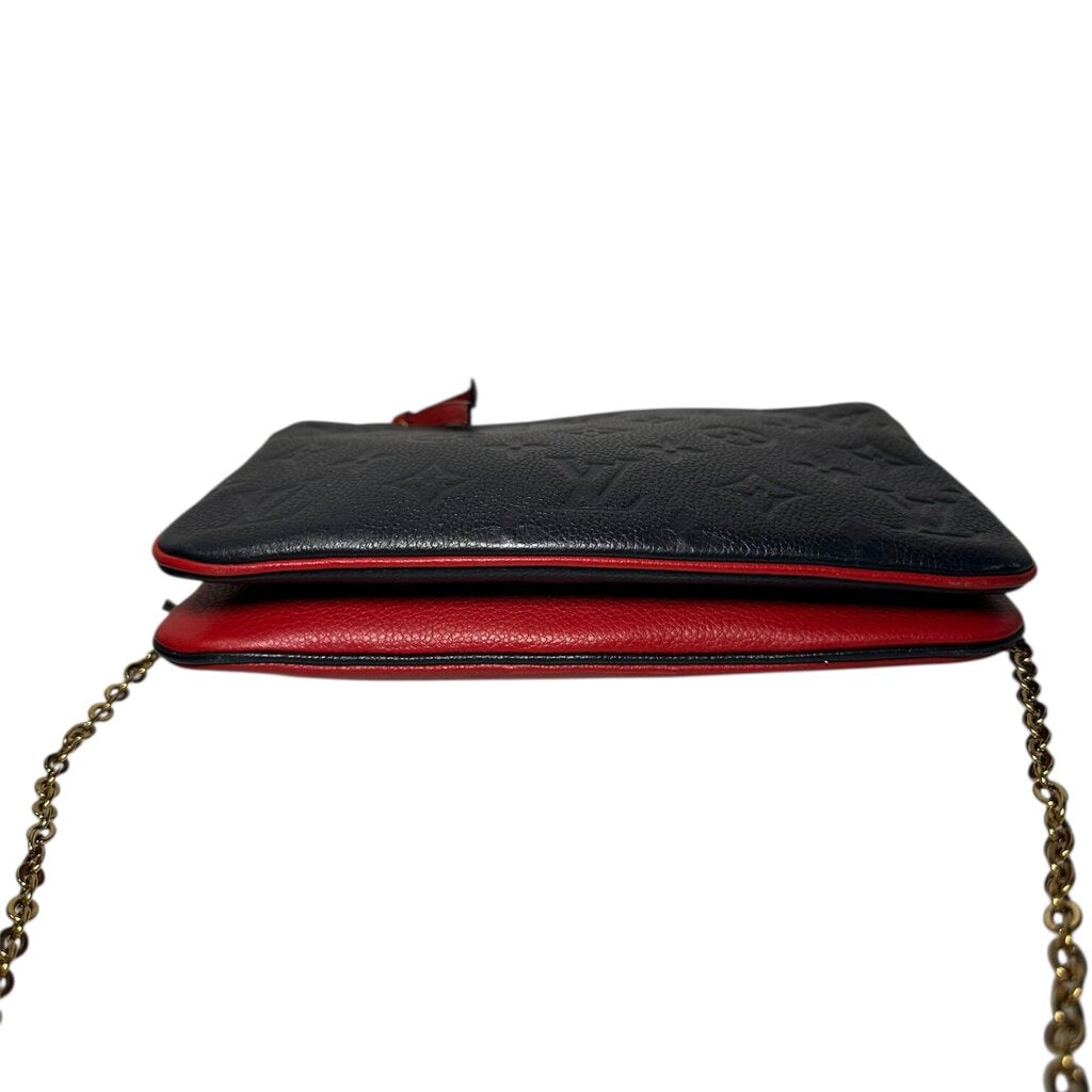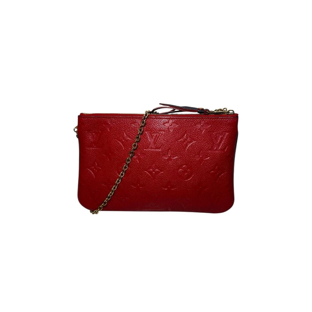 Louis Vuitton Double Zip Marine Rouge Empreinte Pochette Chain Crossbody Red/Navy Date Code: Microchip Dimensions: Dimensions: 8.5 L x 5.1 H x 1.0 W inches Handle Drop: 21.5 inches Does not come with original dust bag or box.