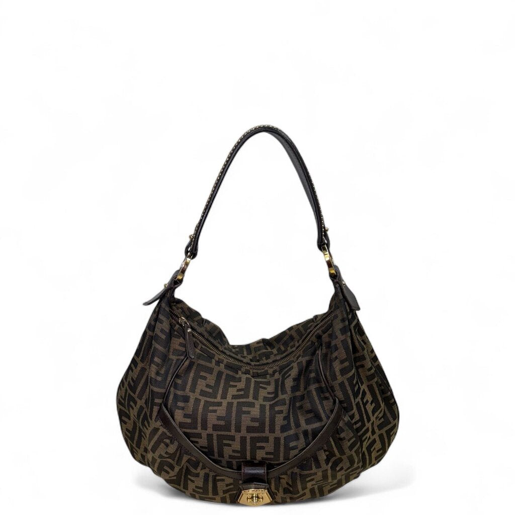 Fendi Canvas Chef Zucca Hobo Monogram Brown