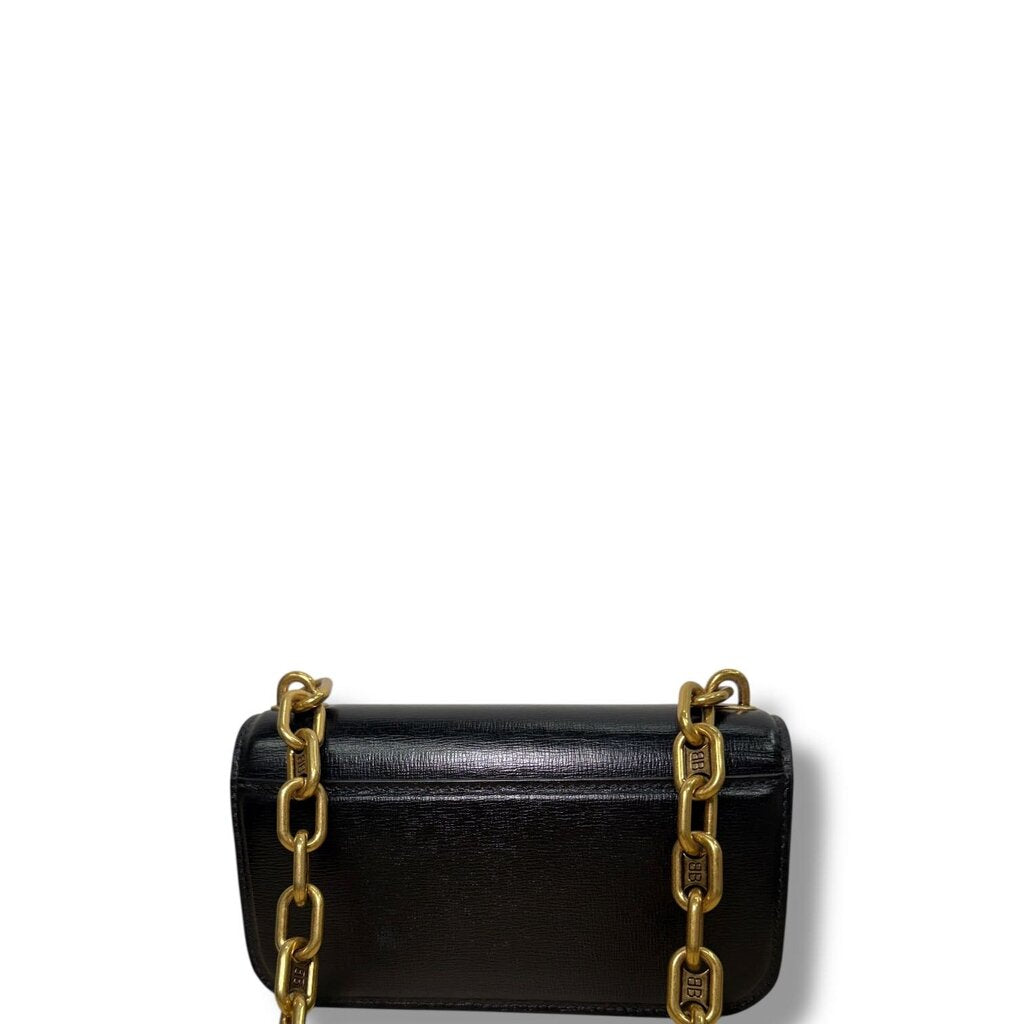 Balenciaga Calfskin Stripe Embossed Gossip Chain Bag Black XS