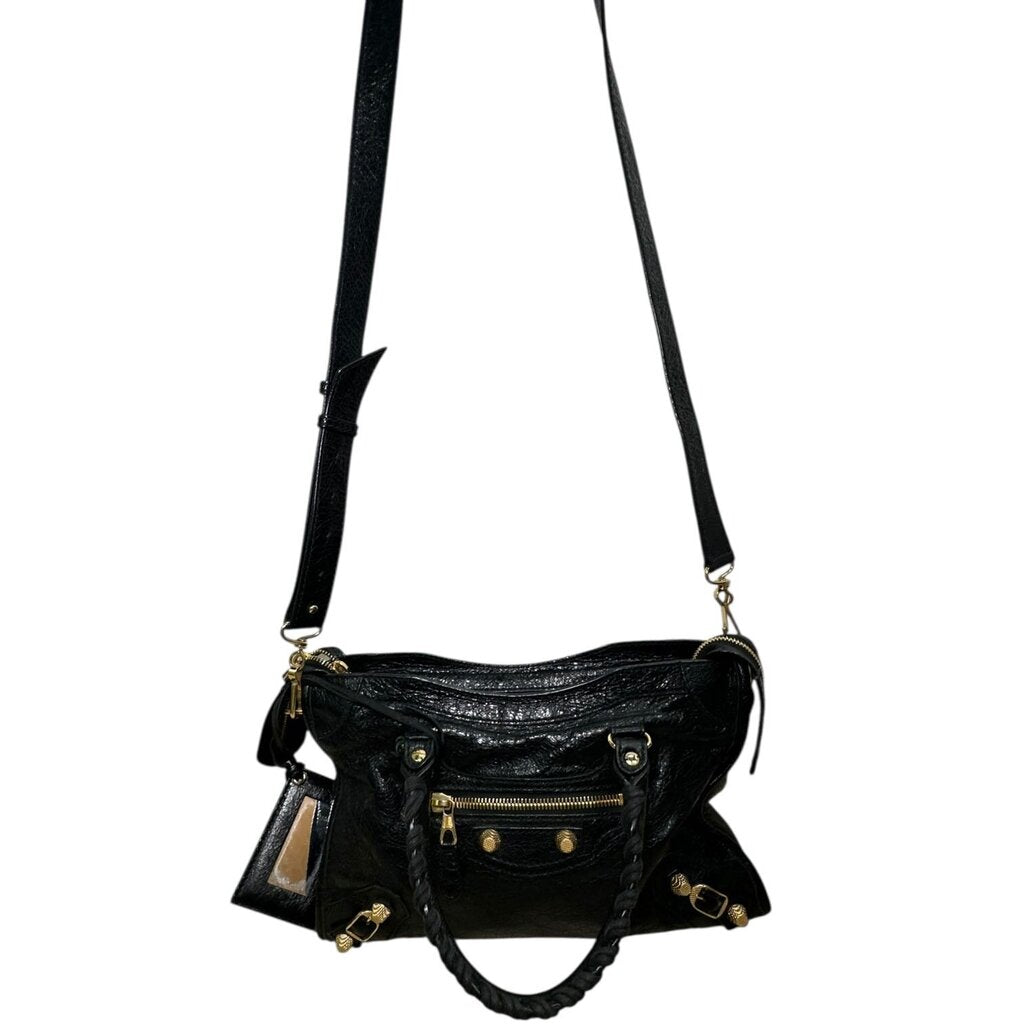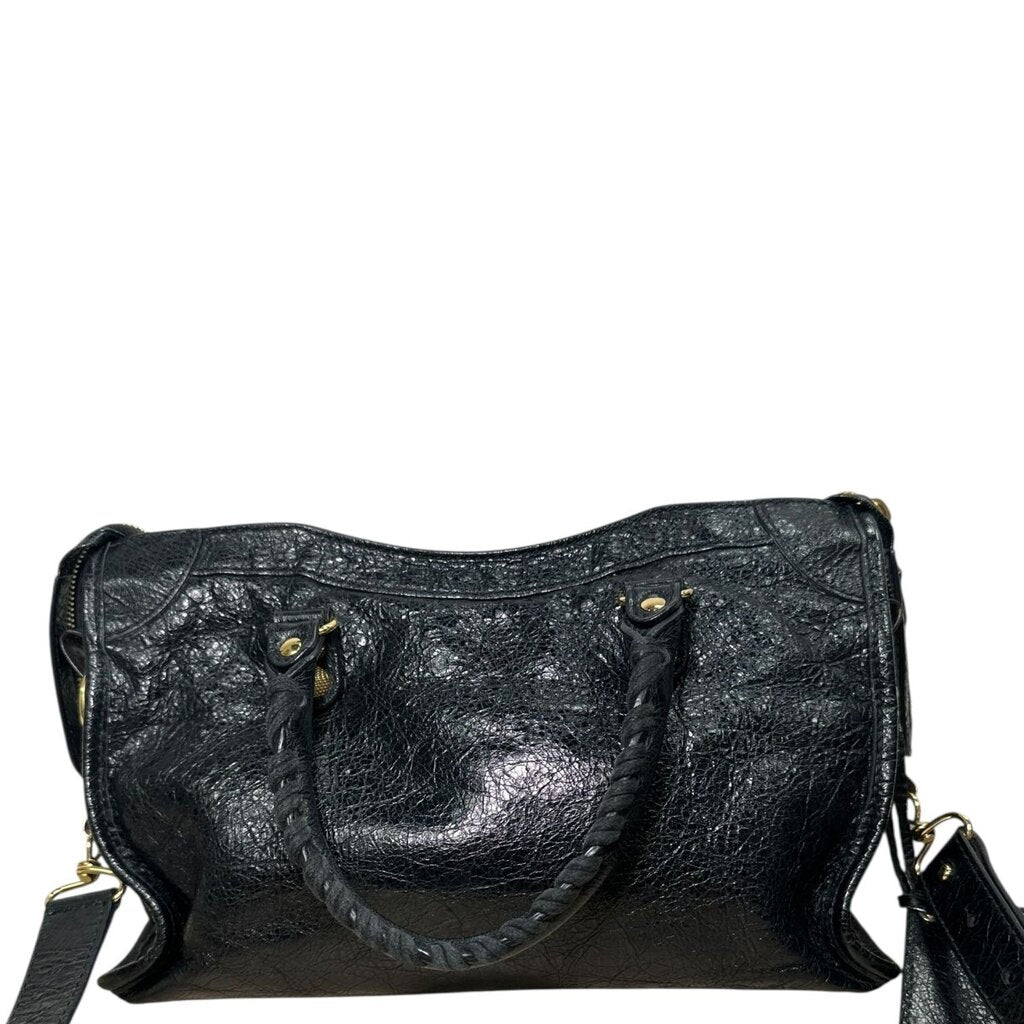 Balenciaga Agneau Black Leather Motocross City Giant Stud Handbag