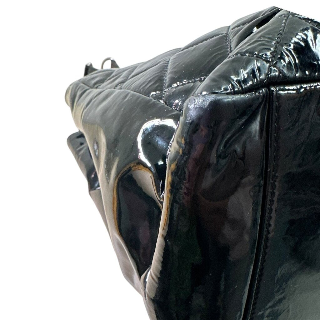 In good condition. The code has fall out of the bag. There is creasing throughout the bag especially near the bottom corners. Little cracking to the handles.