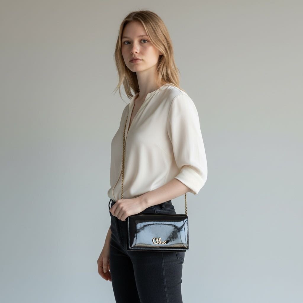 Chloe Icon Classic Patent Flap Crossbody Bag Black Woc
