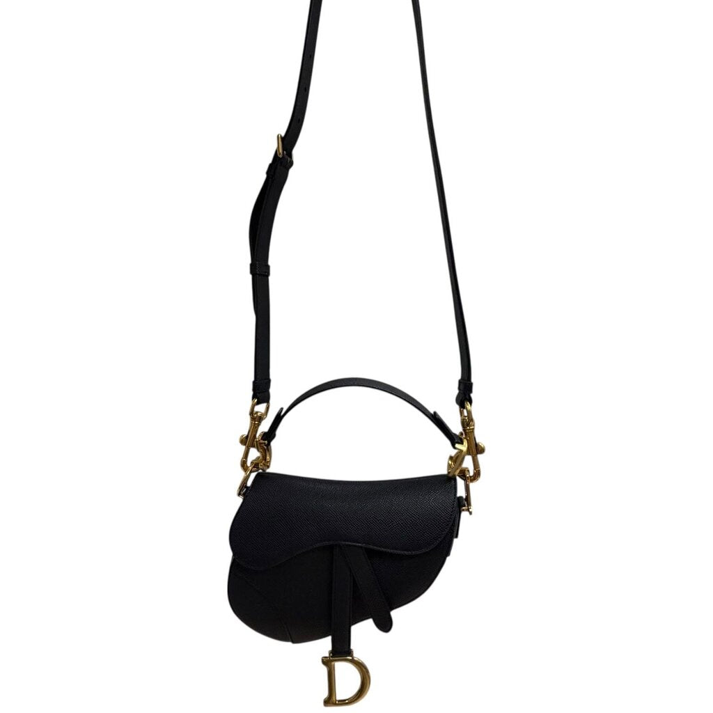 Christian Dior Saddle Grained Leather Crossbody Handbag Black Mini